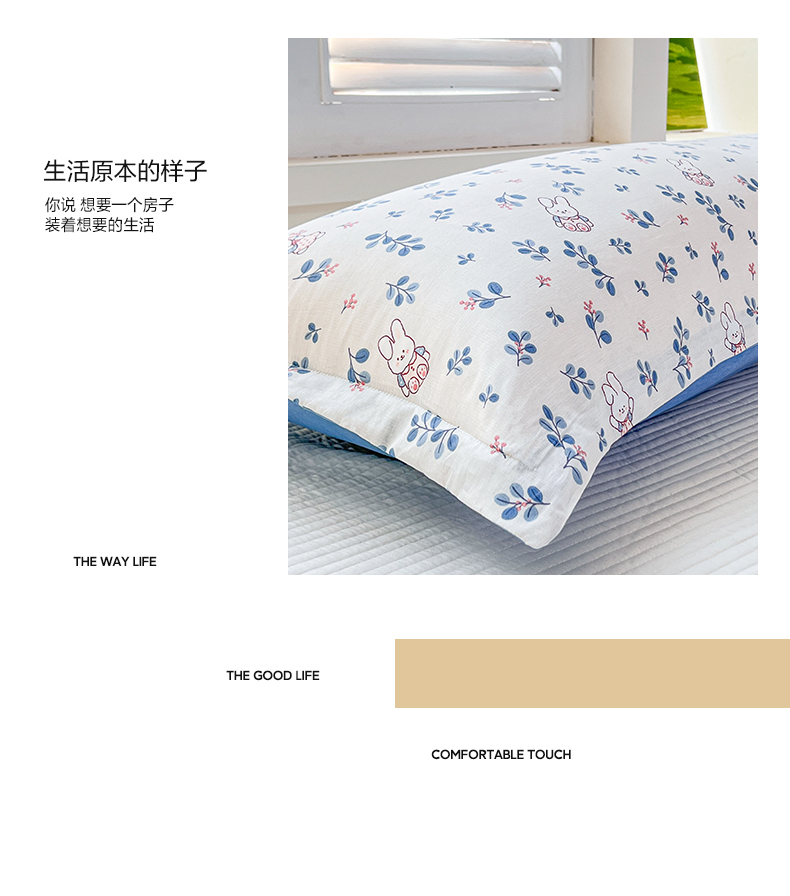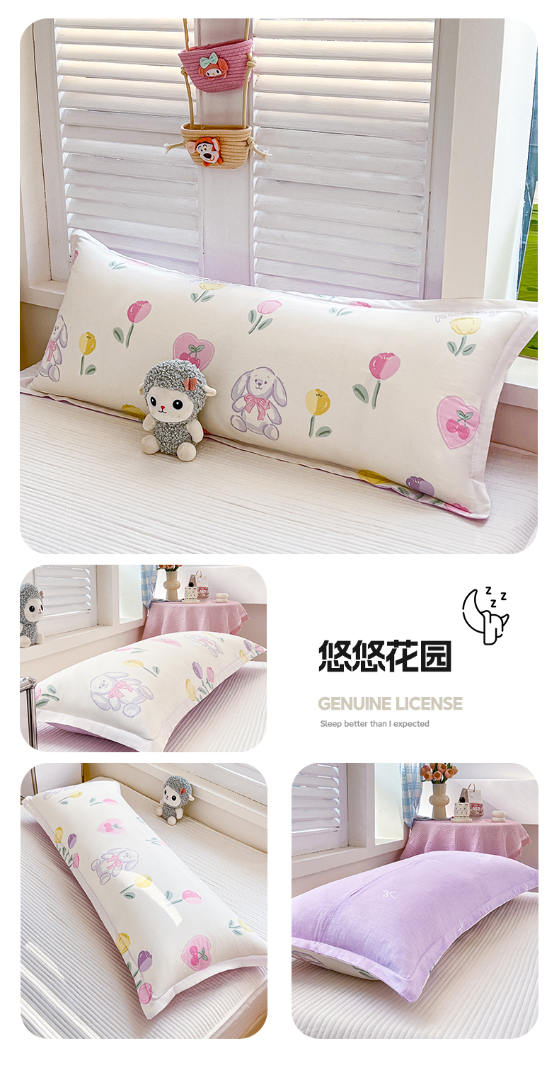 (总)麦田家纺 2025新款云感木棉皱皱双层纱长枕,春意浓,繁花,花颜,开心小熊,腊肠犬,浪漫花语,甜心格,小蓝町,樱桃格,紫韵,纯白