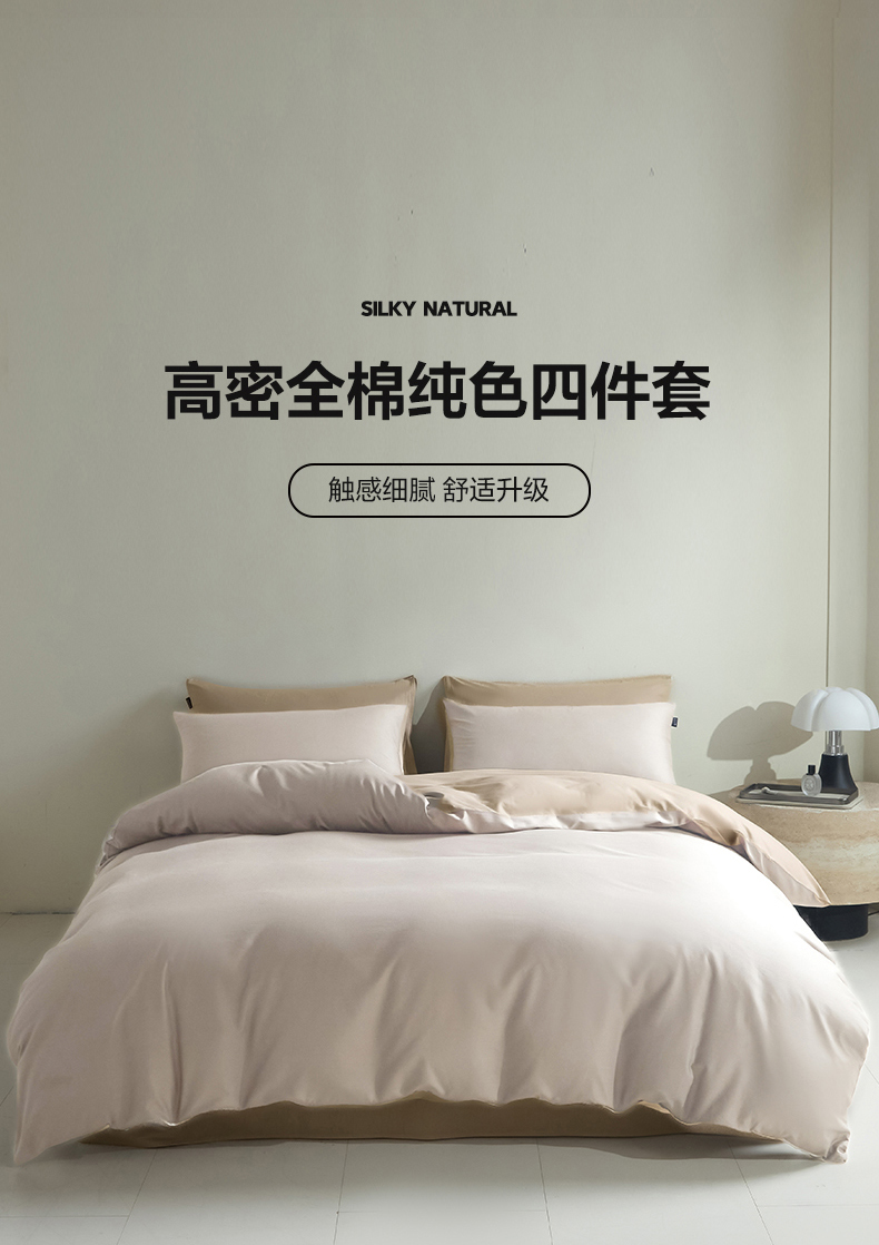 商品名称:麦田家纺 2025新款A类全棉13372纯色四件套 浅米卡其棕