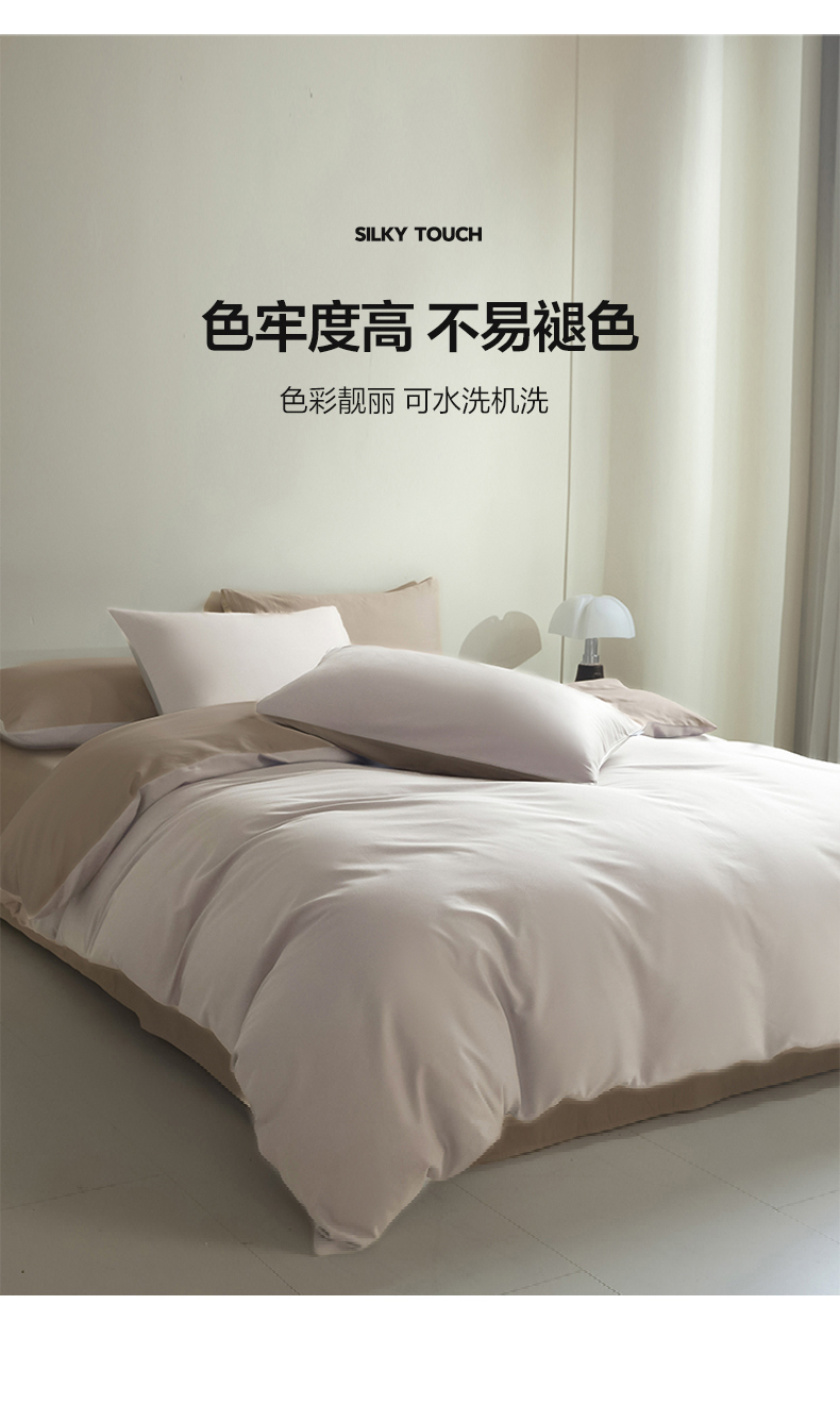 麦田家纺 2025新款A类全棉13372纯色四件套 浅米卡其棕
