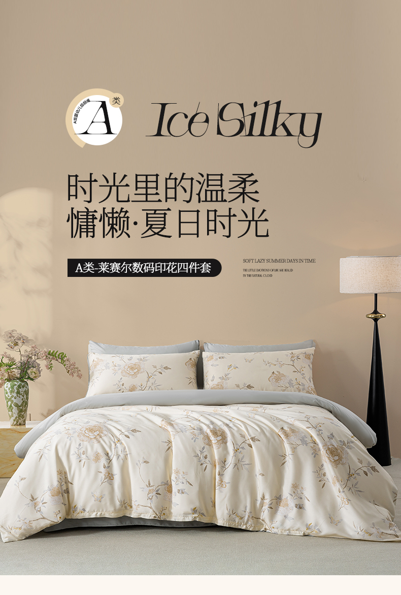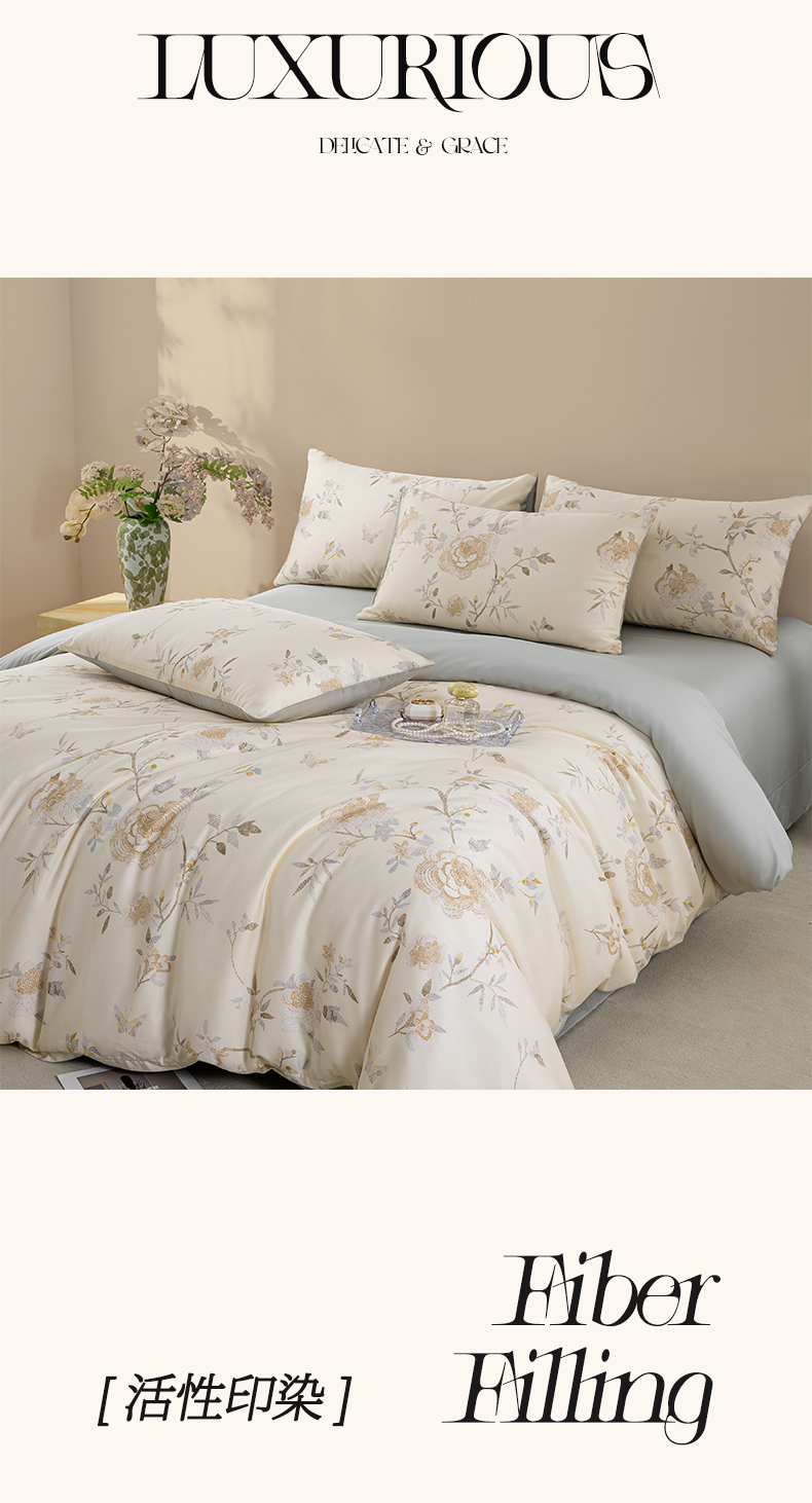 麦田家纺 2025新款50S莱赛尔天丝印花四件套 妍艺