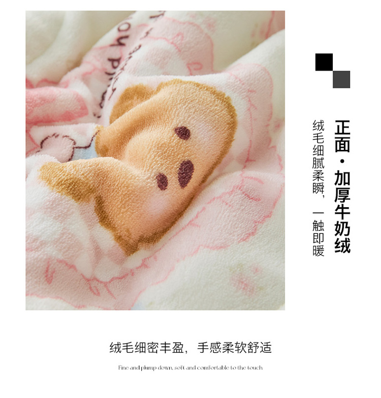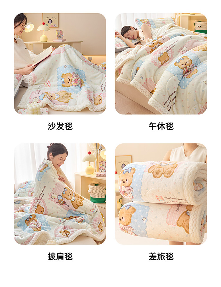 • 91家纺网 家纺一手货源 找家纺 莉莉安家纺 2025秋冬新款加厚三层夹棉牛奶绒贝贝绒毯冬季保暖盖毯复合毛毯 爱心小熊