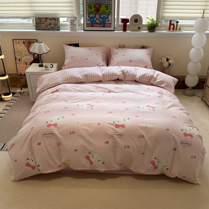 当前位置: 91家纺网 > 商品网购 > 床品套件 > 四件套 > 全棉普通四件套 > 慕尚家纺 2025新款13070全棉纯棉印花四件套 KT猫和鱼