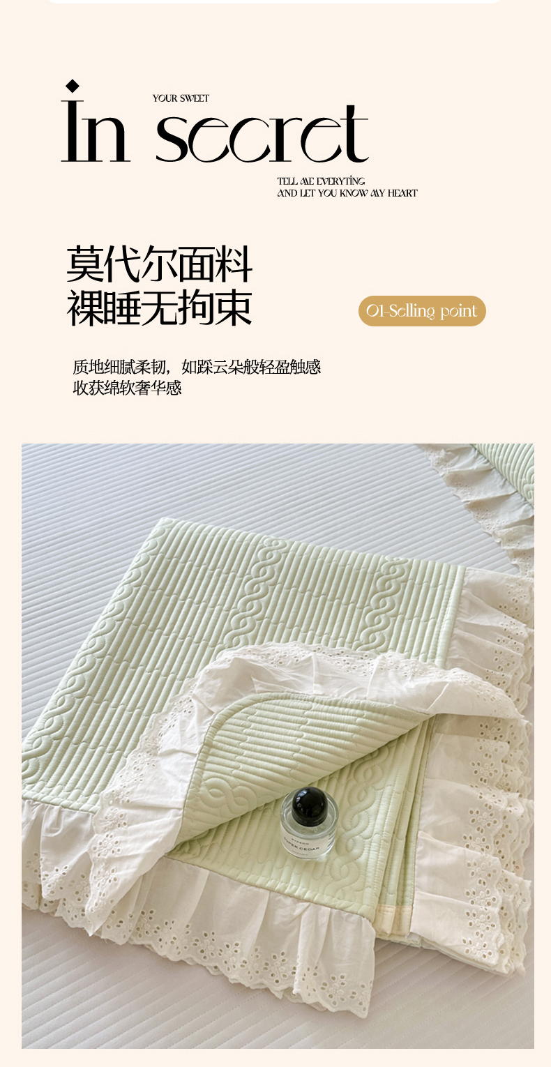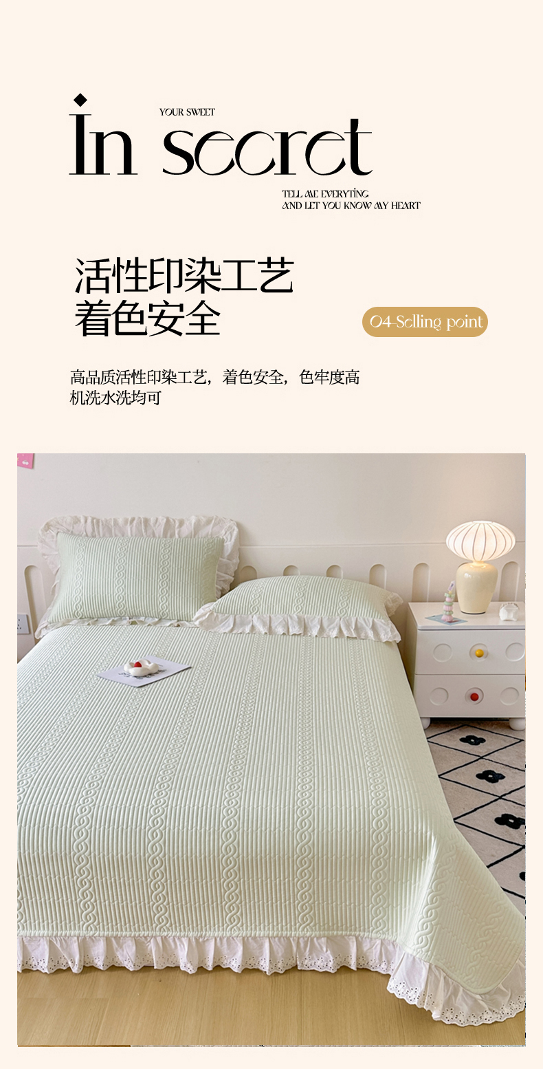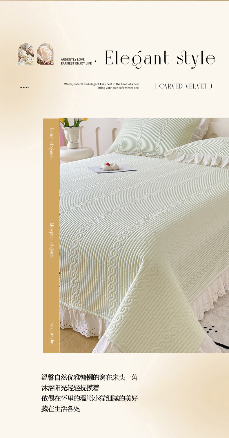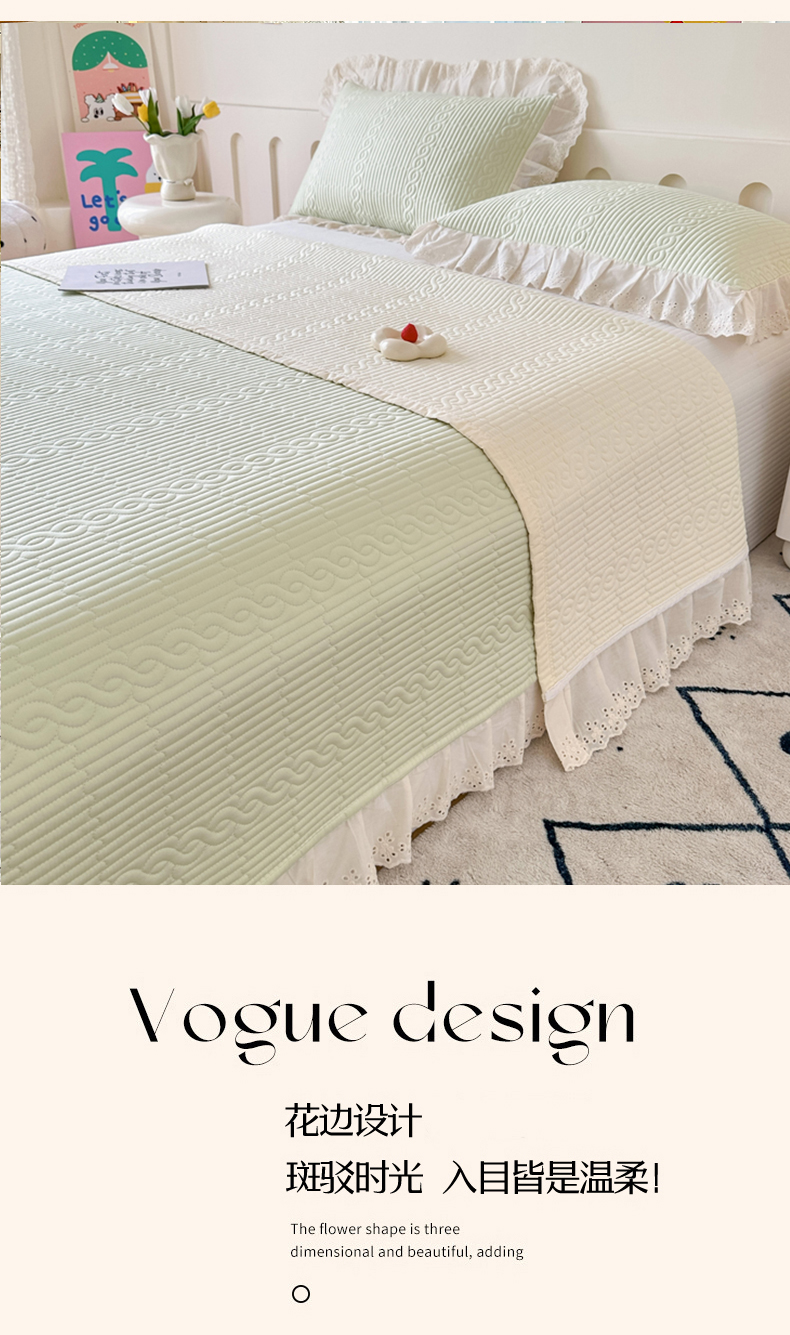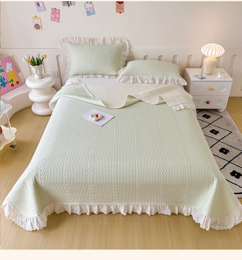 • 91家纺网 家纺一手货源 找家纺 (总)岚吉 2025新款莫代尔纯色小花边床盖三件套,白桃粉,海风蓝,皓月黄,奶油绿,天青色,珍珠灰