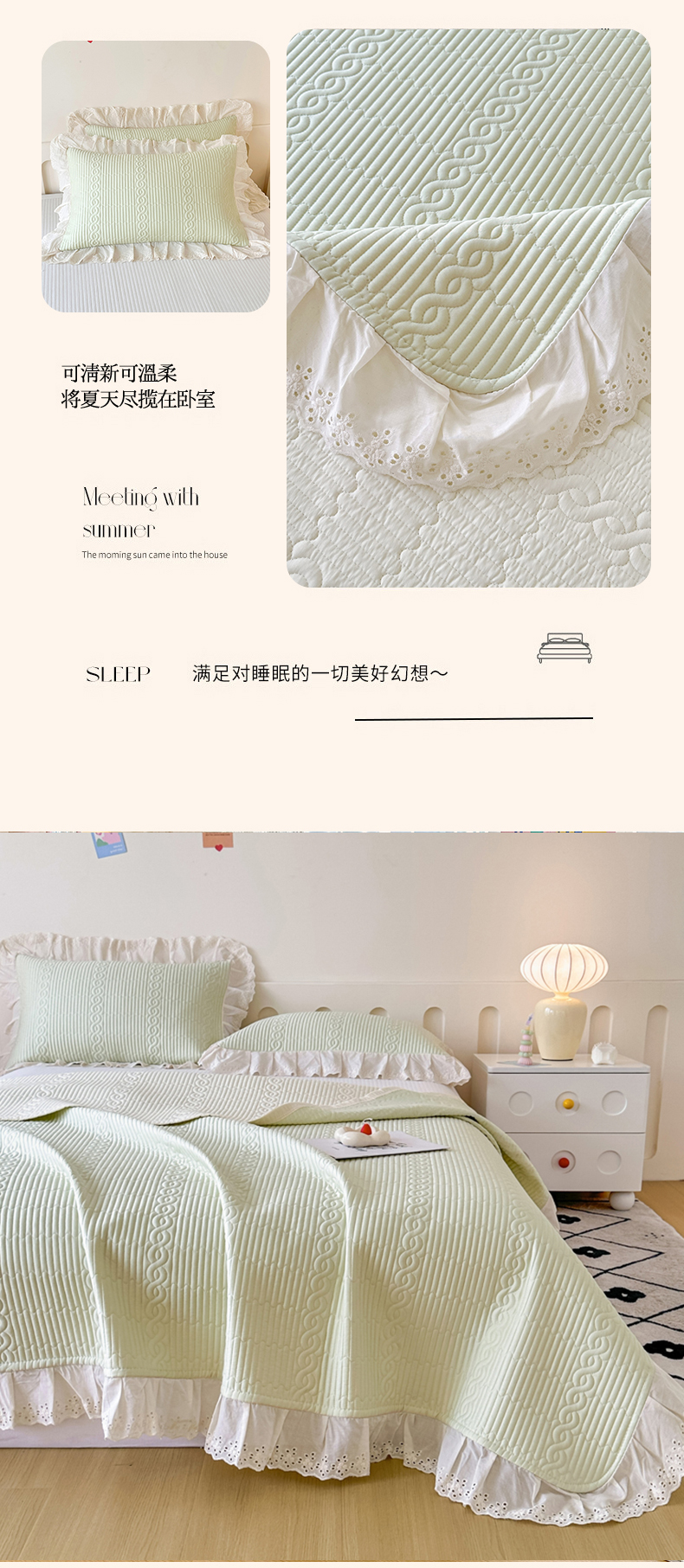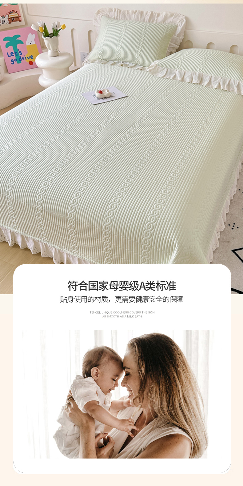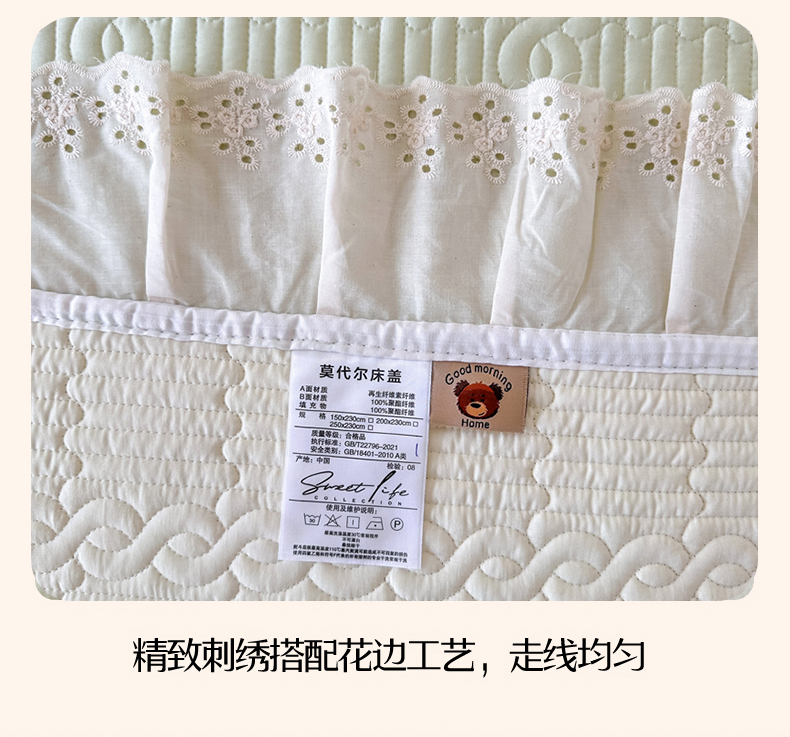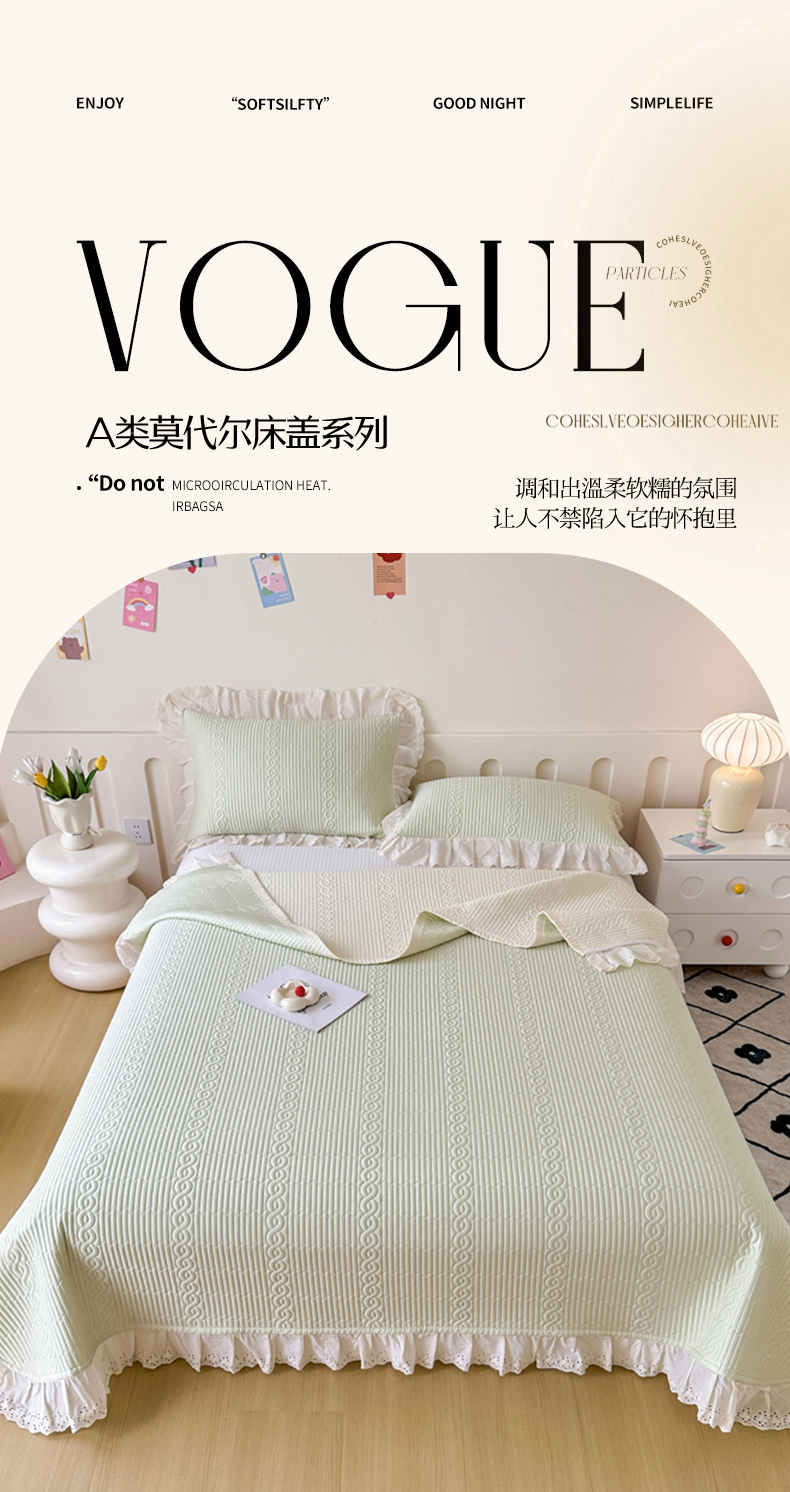 • 91家纺网 家纺一手货源 找家纺 岚吉家纺 2025新款莫代尔印花床盖 奶油绿