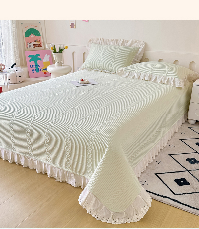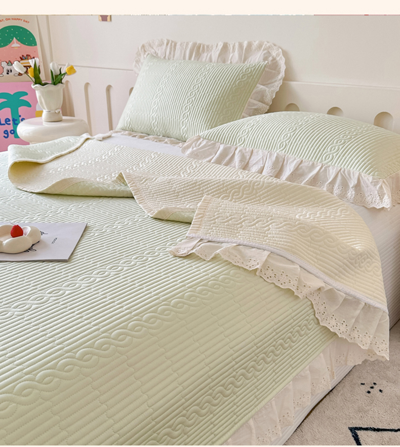 岚吉家纺 2025新款莫代尔印花床盖 奶油绿