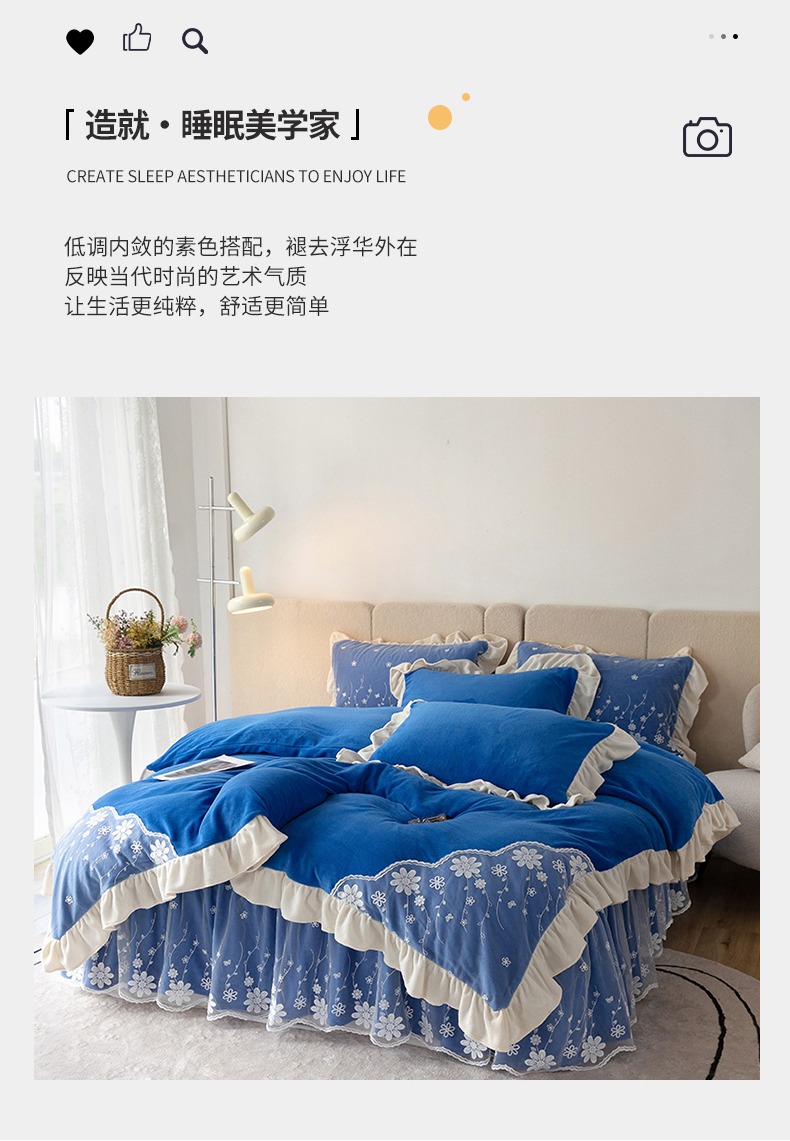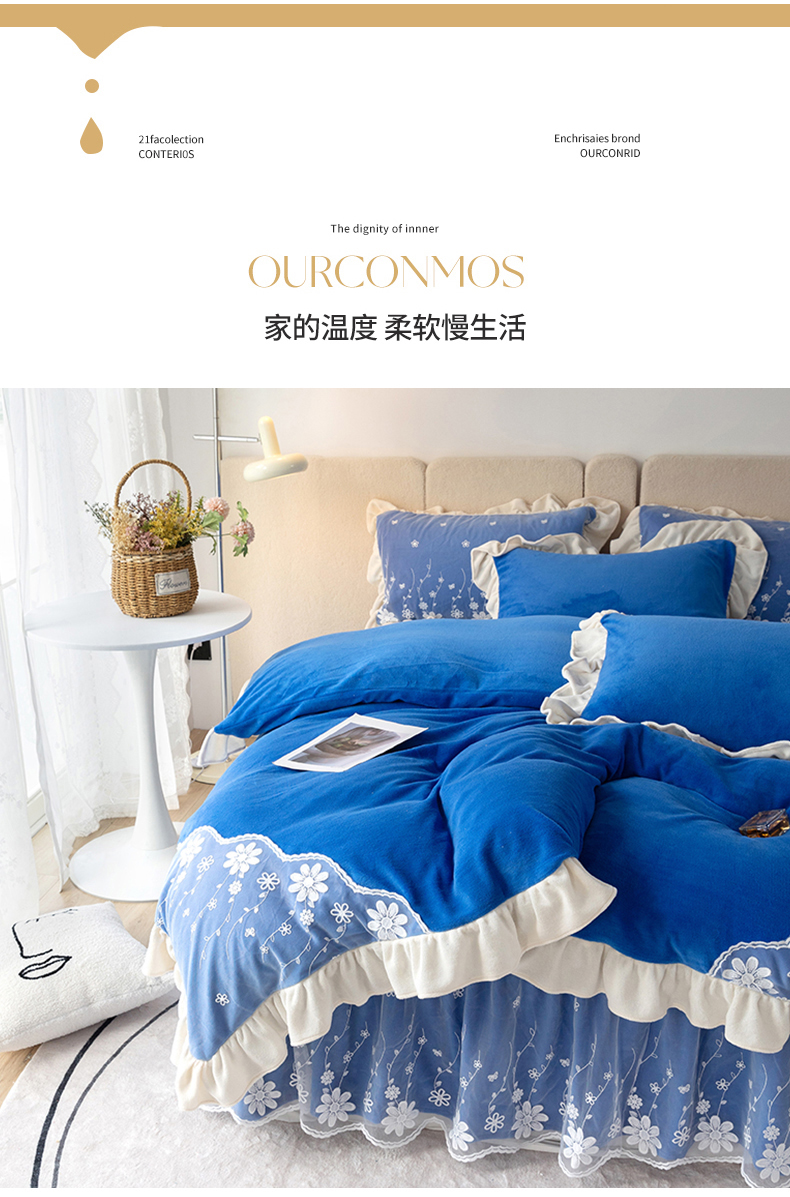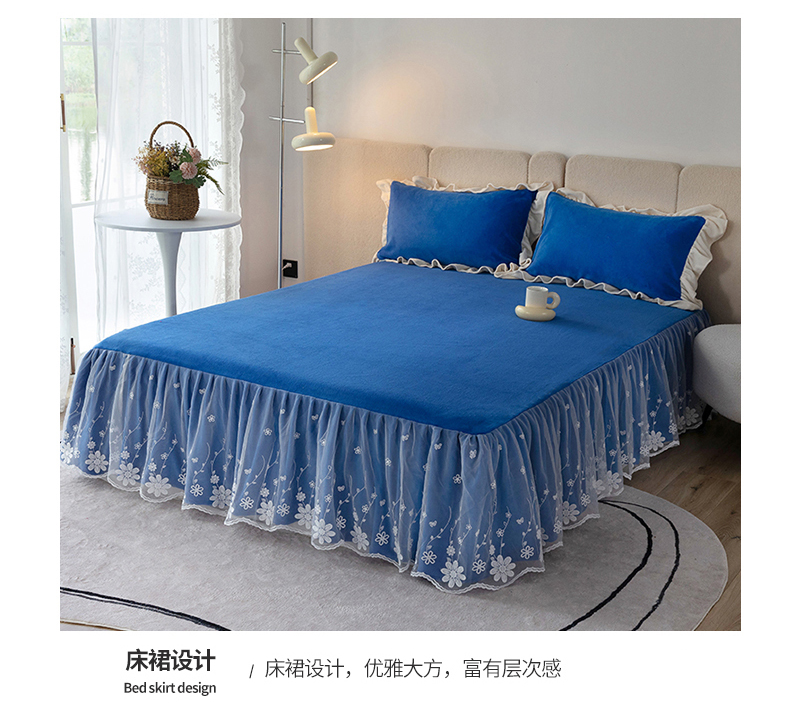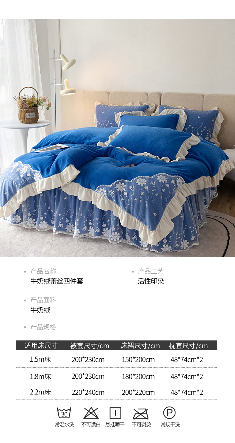 商品名称:睡美人 2025新款牛奶绒蕾丝款床裙四件套花仙子系列 花仙子-梦幻蓝