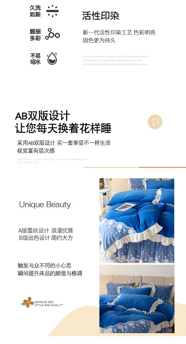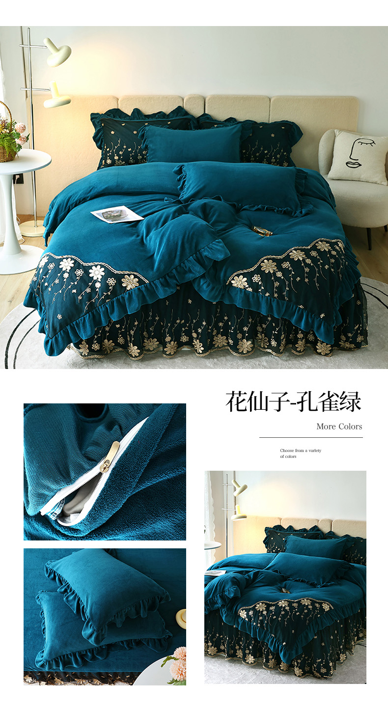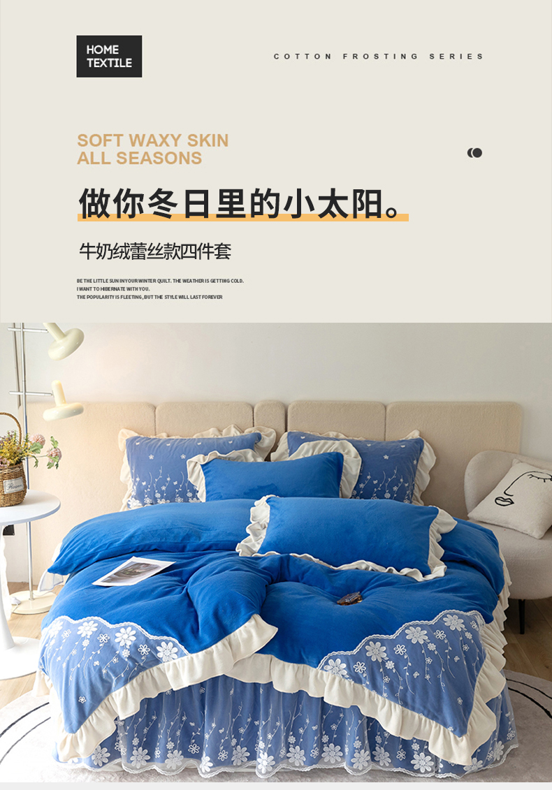 商品名称:睡美人 2025新款牛奶绒蕾丝款床裙四件套花仙子系列 花仙子-梦幻蓝