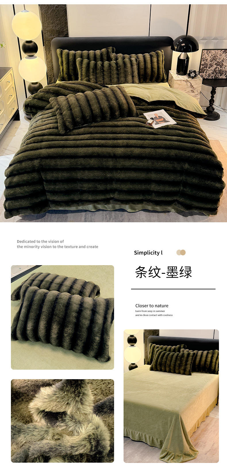 商品名称:唐人居 2025新款兔毛绒牛奶绒四件套--条纹 条纹-浅灰