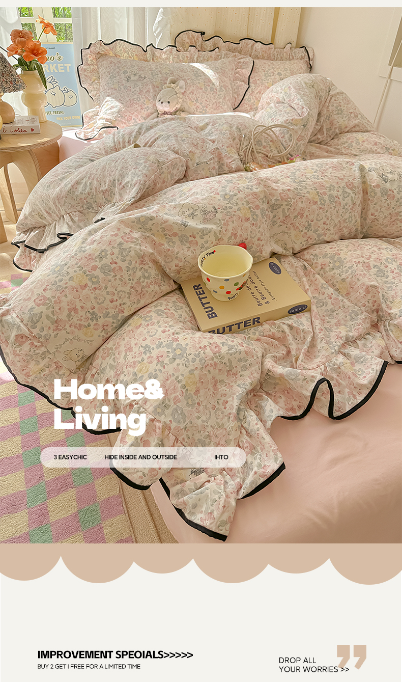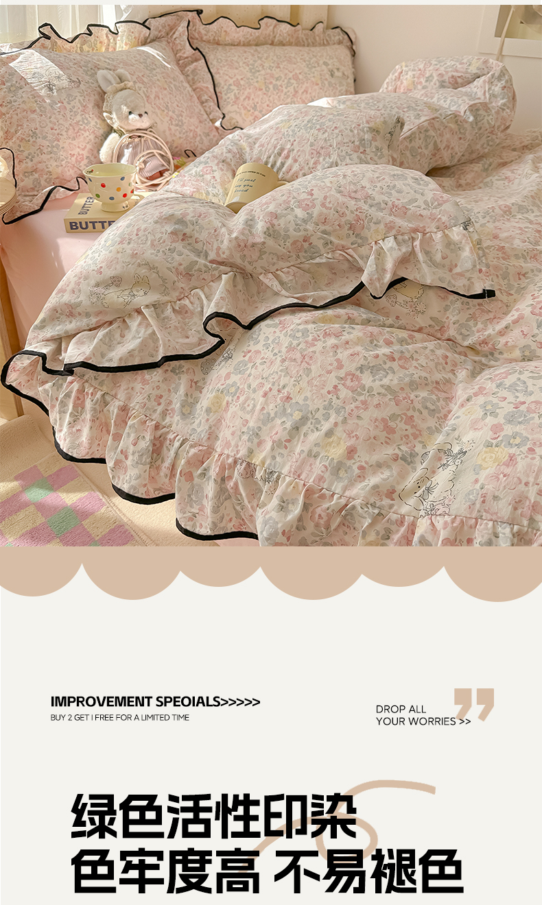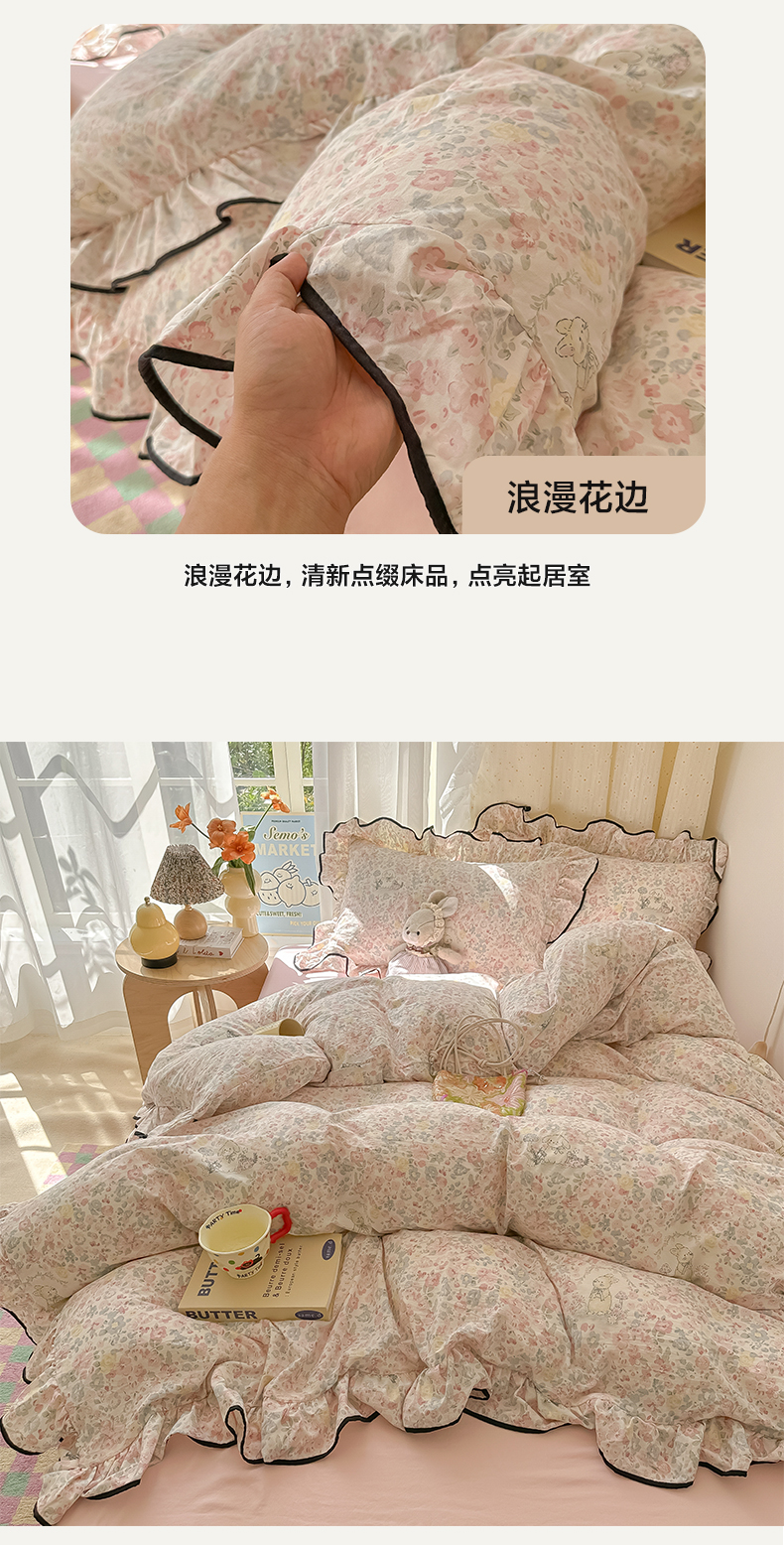 当前位置: 91家纺网 > 商品网购 > 床品套件 > 四件套 > 其它四件套 > 韩巢家纺 2025新款水洗棉大花边被套四件套直播热销款学生宿舍被罩床单三件套(提供卖家秀) 幸运可爱兔【大花边款】
