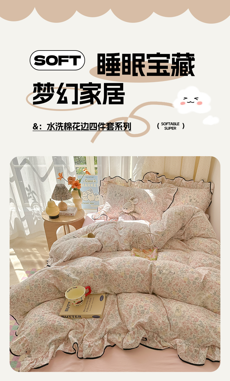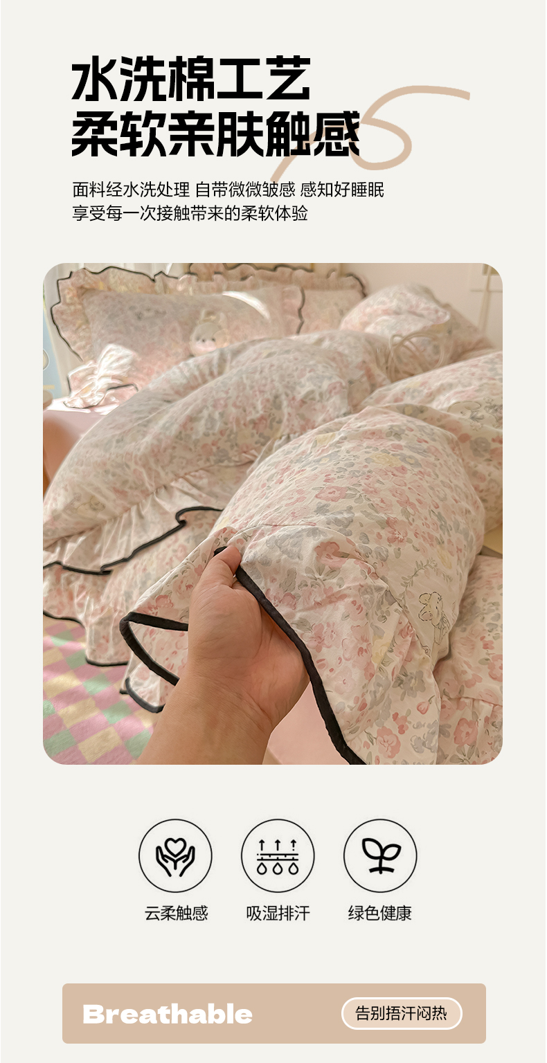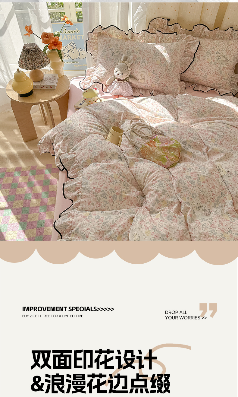 当前位置: 91家纺网 > 商品网购 > 床品套件 > 四件套 > 其它四件套 > 韩巢家纺 2025新款水洗棉大花边被套四件套直播热销款学生宿舍被罩床单三件套(提供卖家秀) 幸运可爱兔【大花边款】