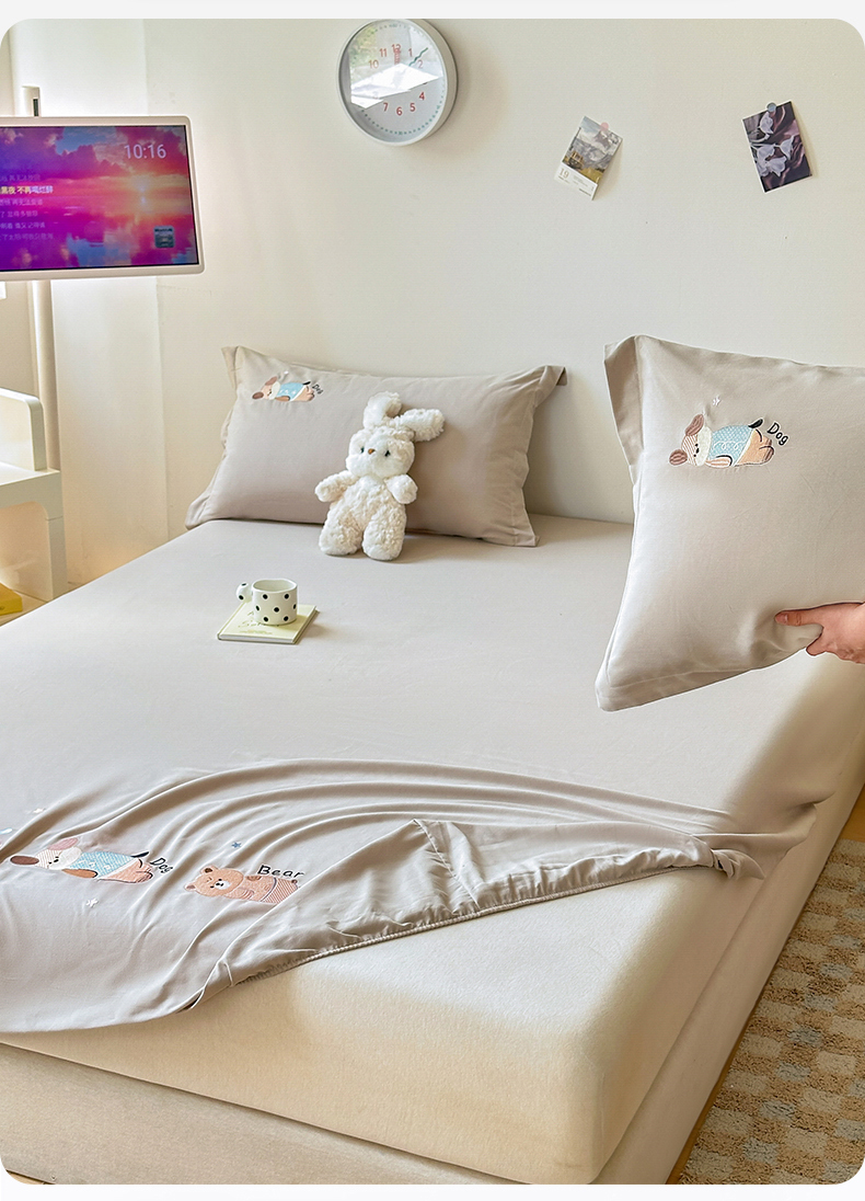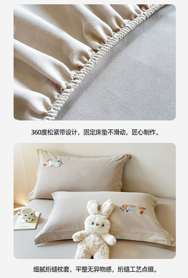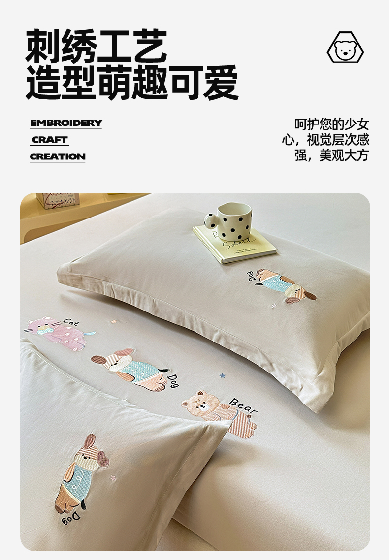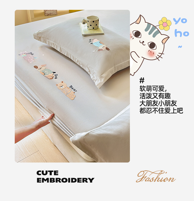商品名称:笙意家纺 2025新款全棉纯棉磨毛刺绣单品床笠 床笠单件 萌宠-热带棕
