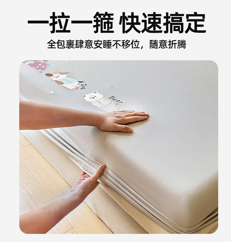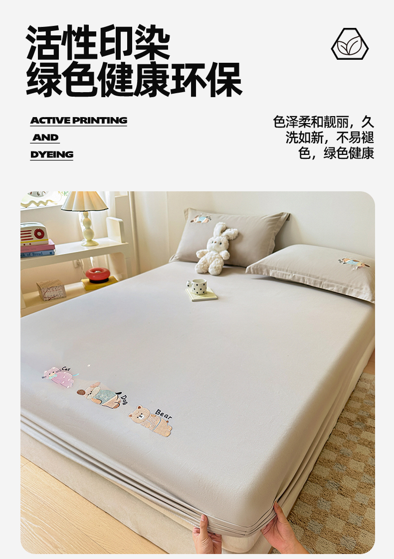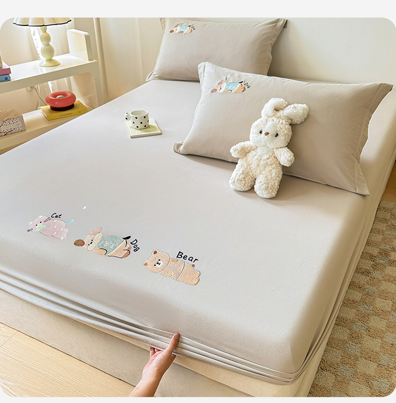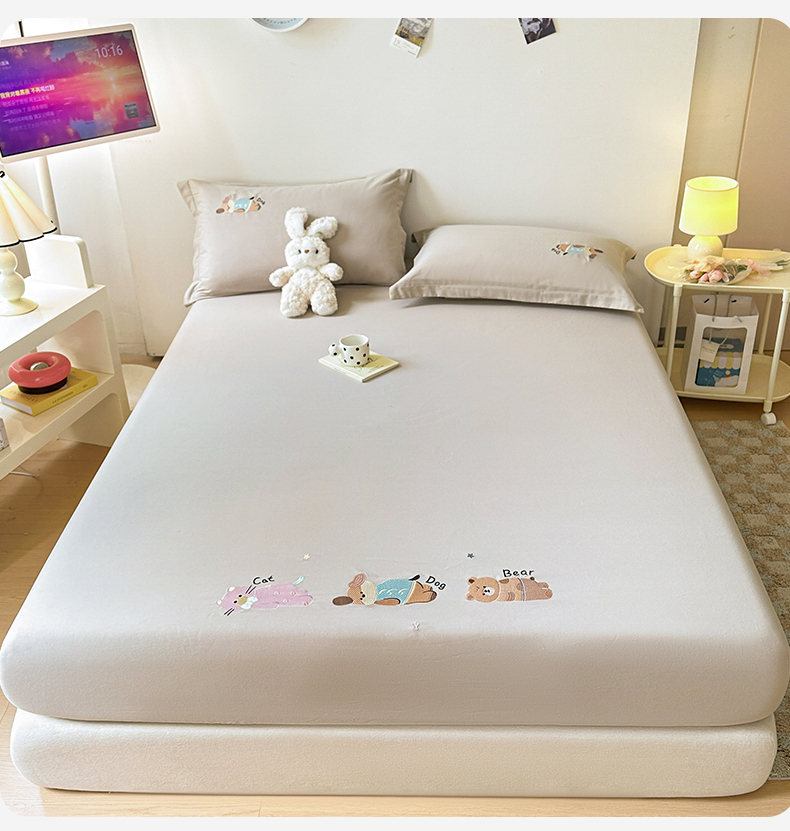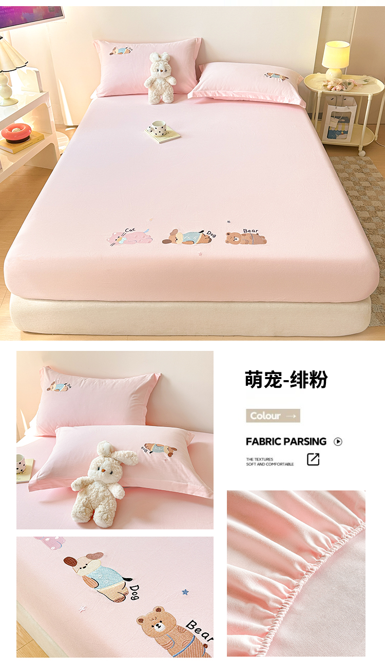 笙意家纺 2025新款全棉纯棉磨毛刺绣单品床笠 床笠单件 萌宠-热带棕