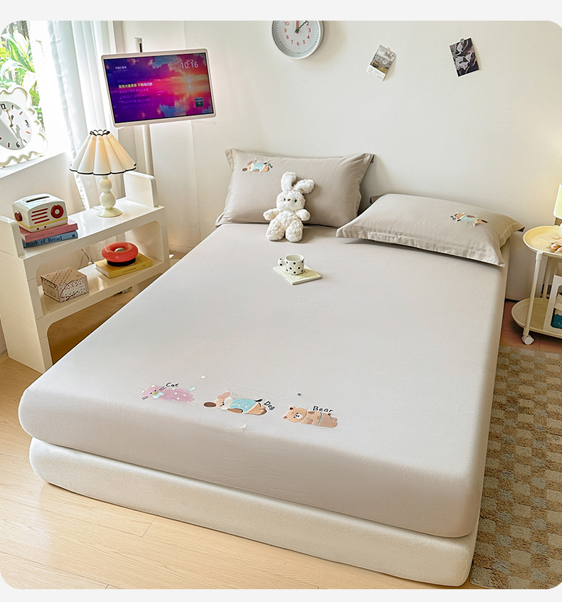 (总)笙意家纺 2025新款A类牛奶绒海獭绒卡通刺绣床笠,卡通-驼色,卡通-浅米色,卡通-香槟金,卡通-叶绿,卡通-玉粉,卡通-月光紫