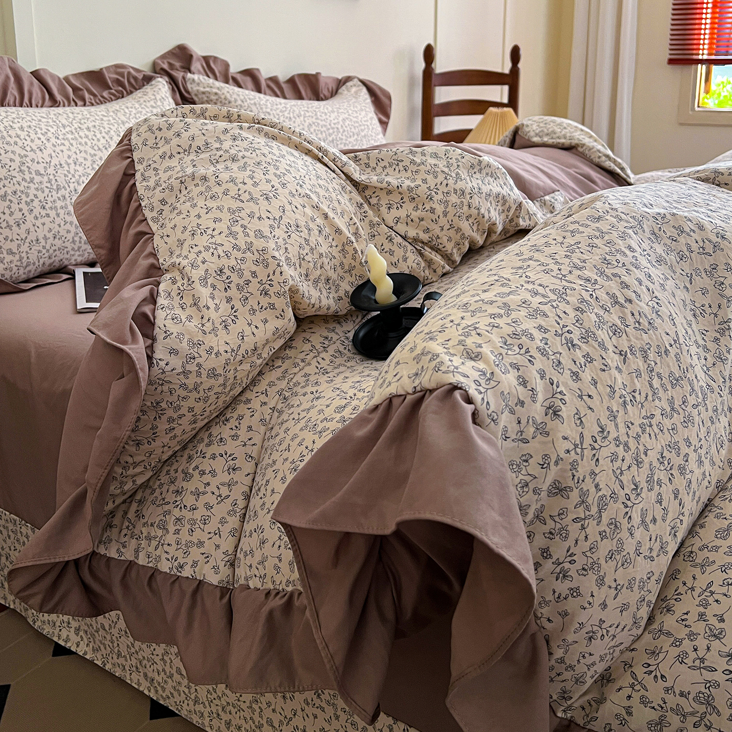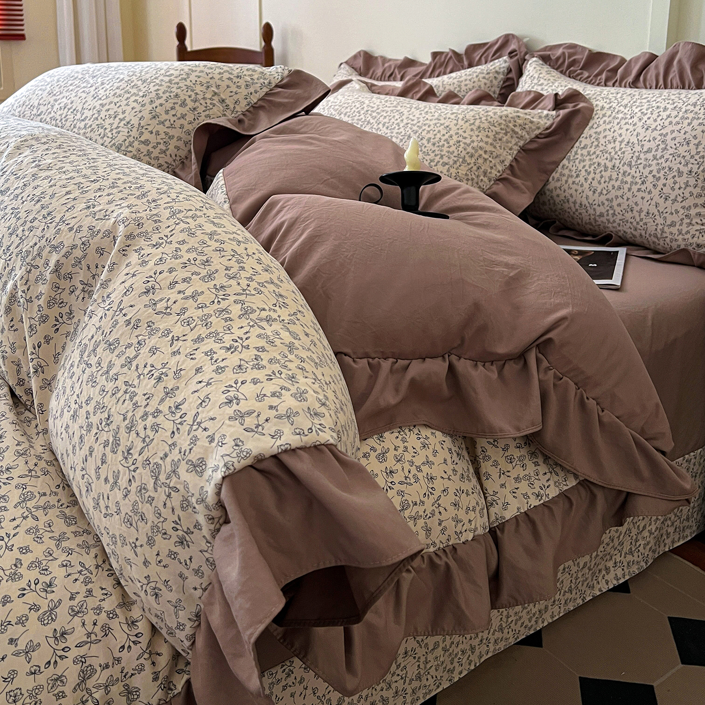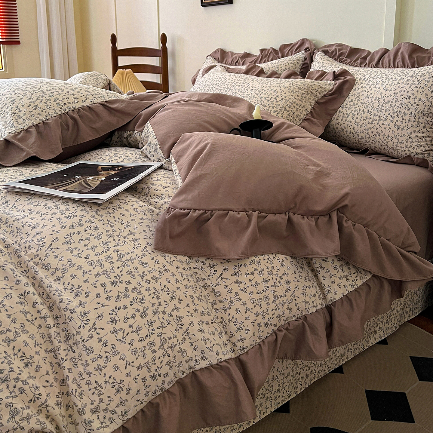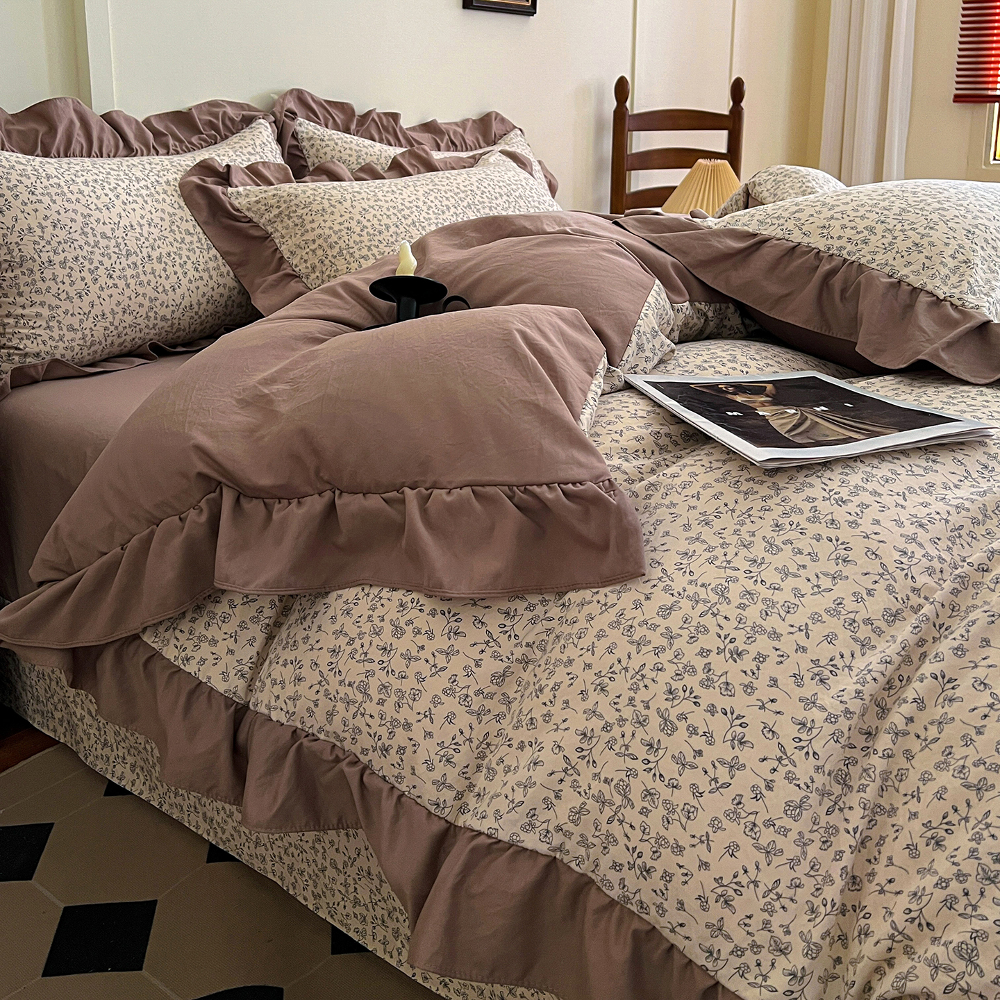 (总)梦莱斯 2025新款田园碎花纯棉花边四件套-床盖款,采薇,花精灵,花开半夏,莱茵,恋爱季,绿叶仙踪,糜花似锦,糜花熙悦,秘境花园
