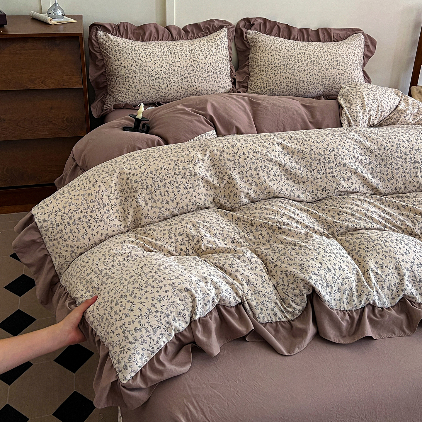 (总)梦莱斯 2025新款云感木棉皱皱双层纱全棉花边四件套,百福蓝,春风里,薄荷微凉,春晓,豆蔻,蝴蝶梦,可颂,兰黛,山野栀子,素颜,太妃糖,心动,遇见,芝士奶酪,紫爱心,紫苏,花园兔,蜡笔画,小黑兔,白茶-绿,初恋,莱茵河畔,桃花诺