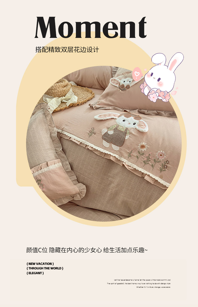 商品名称:(总)艾唯希家纺 2025新款全棉纯棉色织小提花工艺四件套-开心兔系列