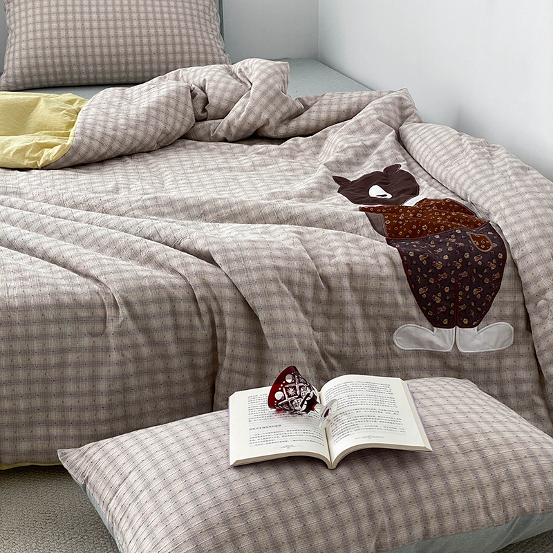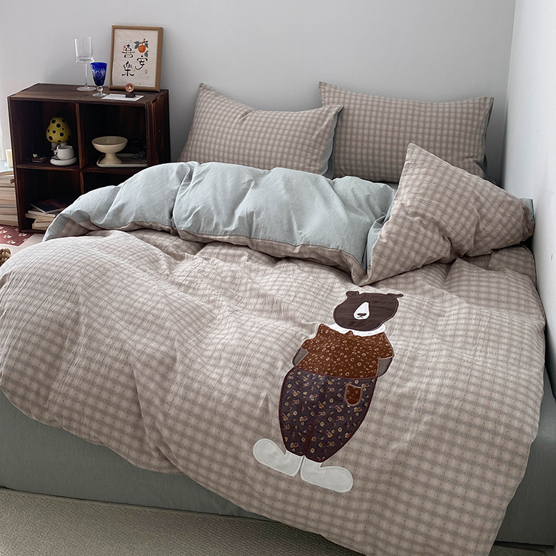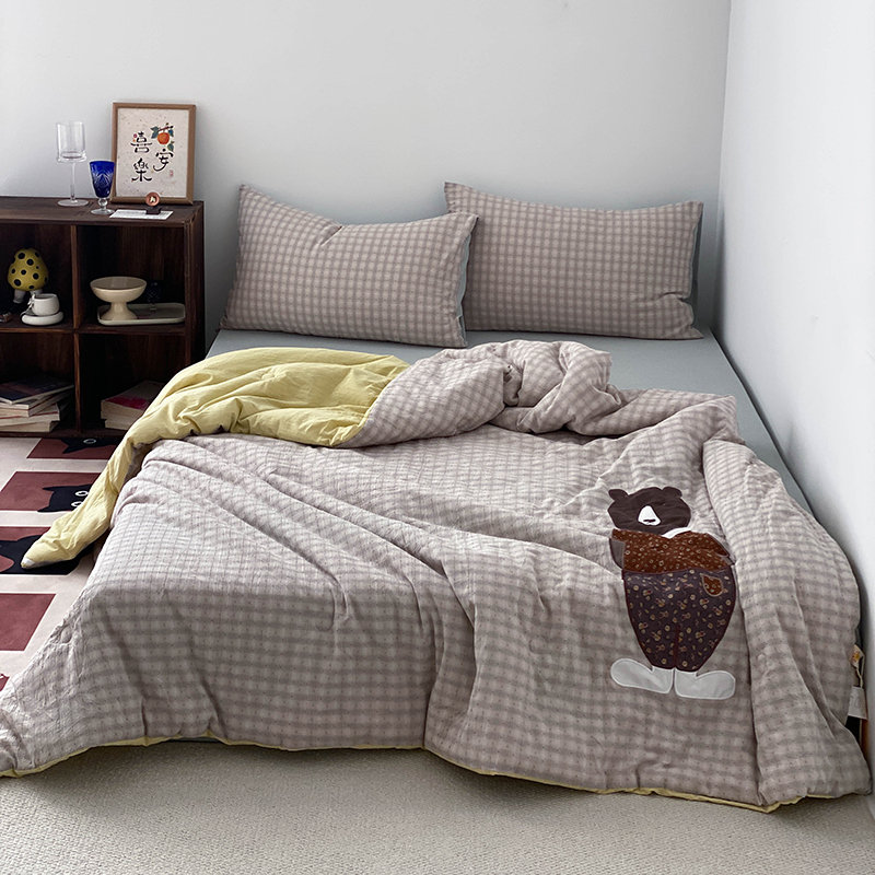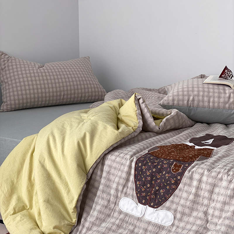 贝尔 2025新款全棉色织提花贴布绣四件套 蜂蜜芥末黄
