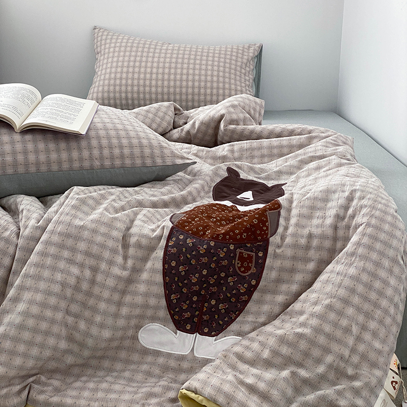 贝尔 2025新款纯色高克重牛奶绒刺绣四件套-羽魅 羽魅-高级灰,羽魅-高级灰