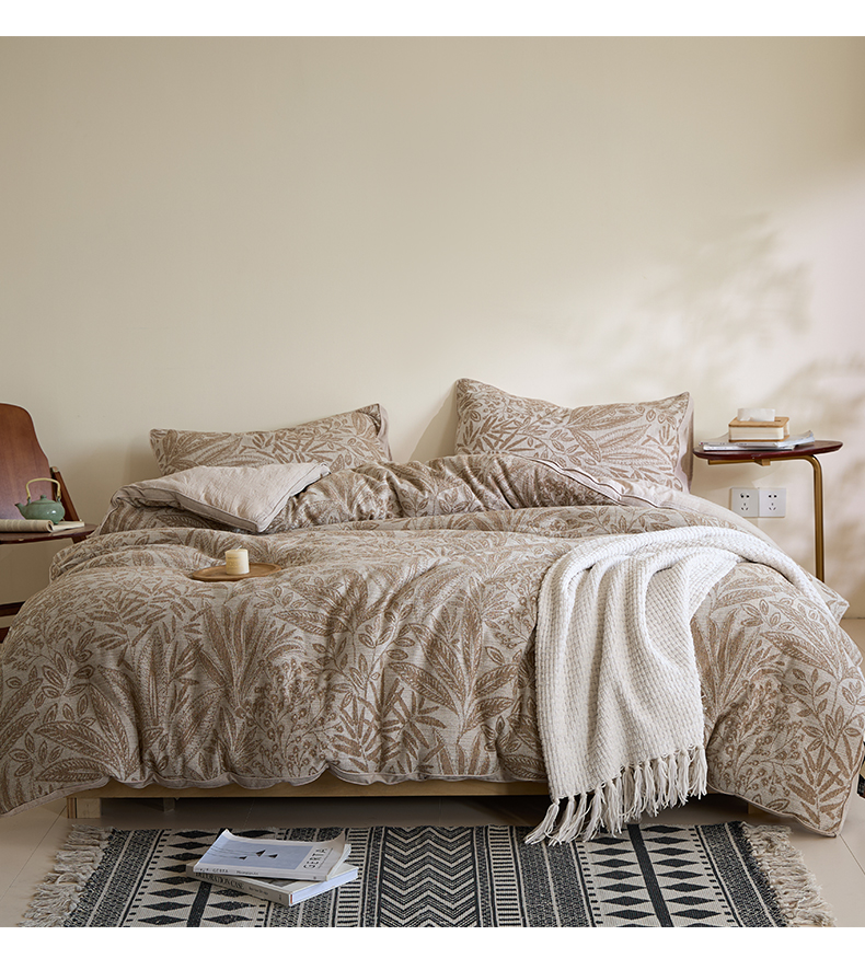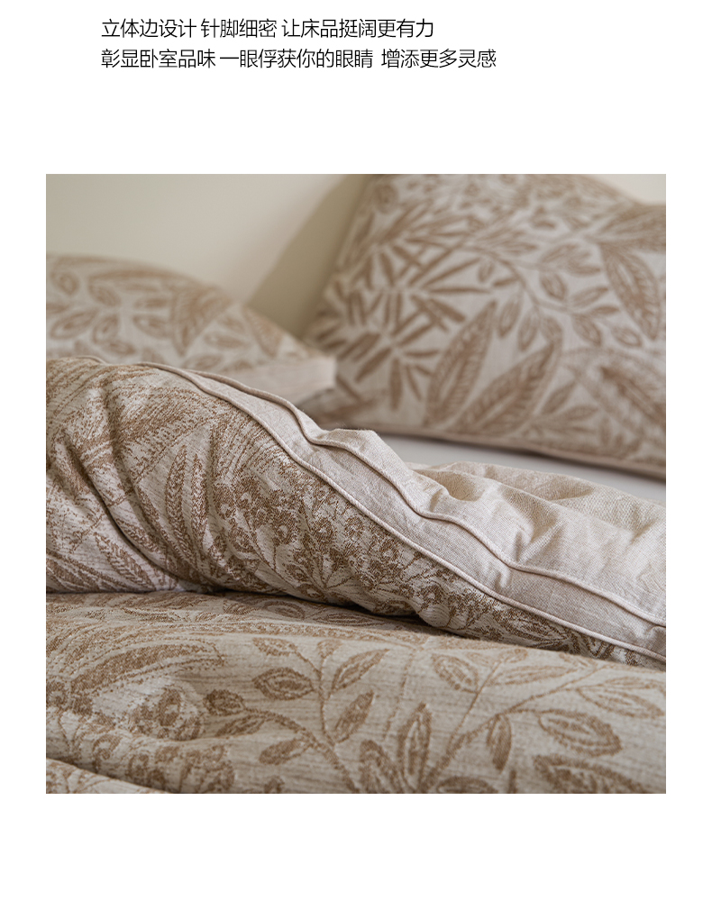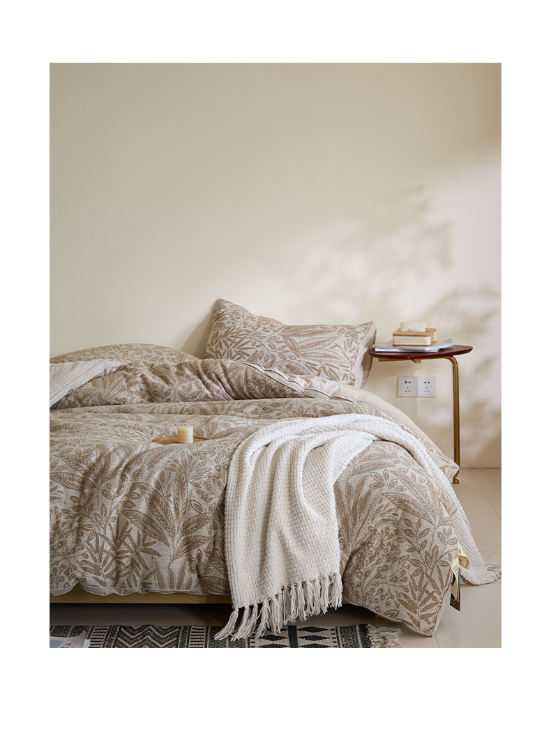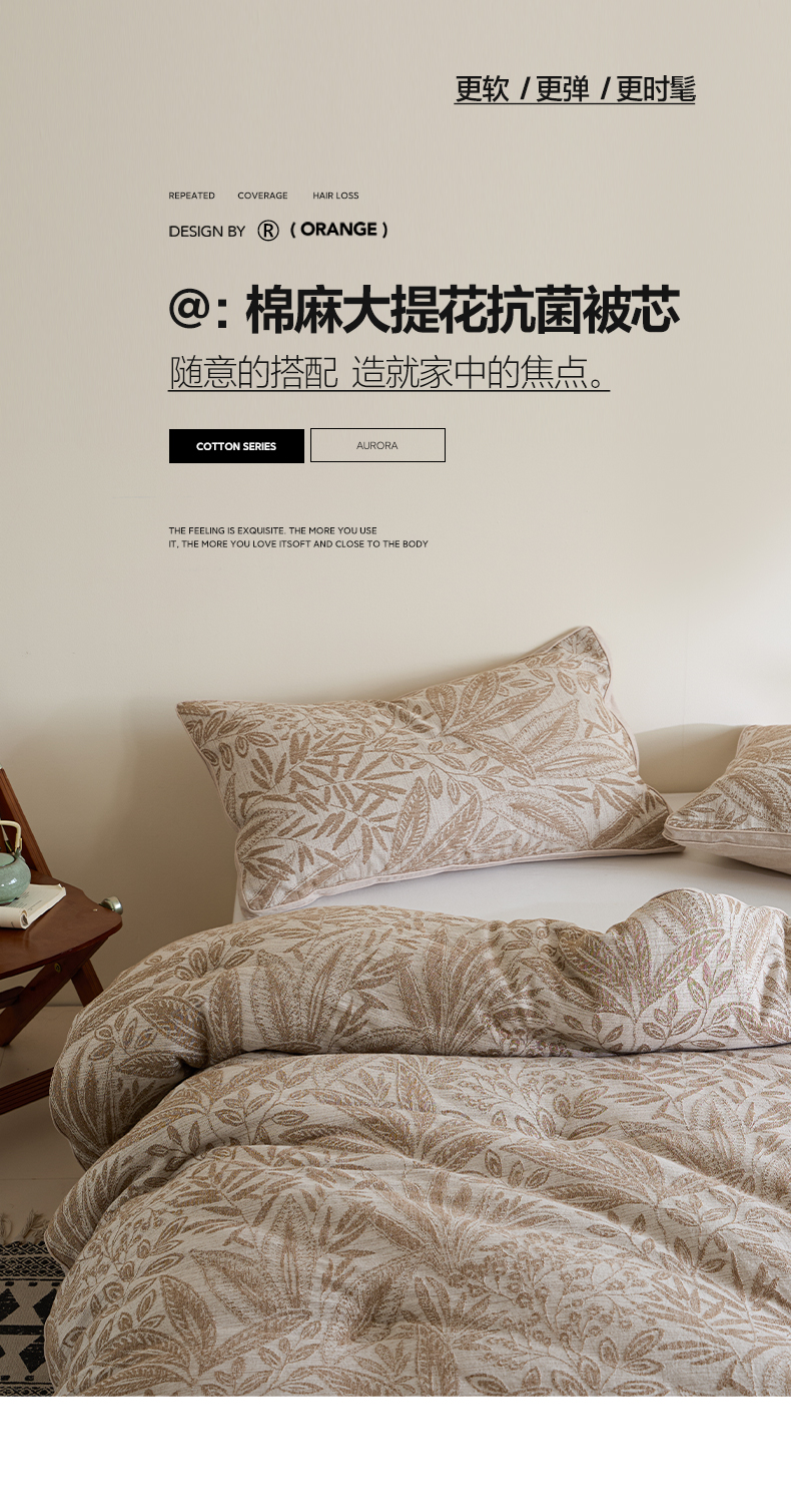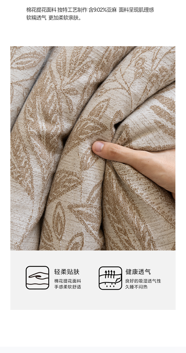 一加一 2025新款棉麻大提花抗菌被子被芯 繁花-卡其