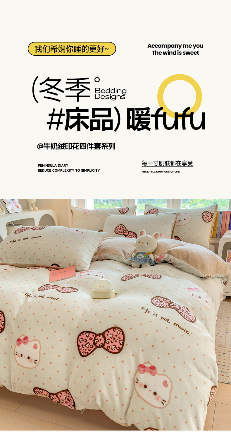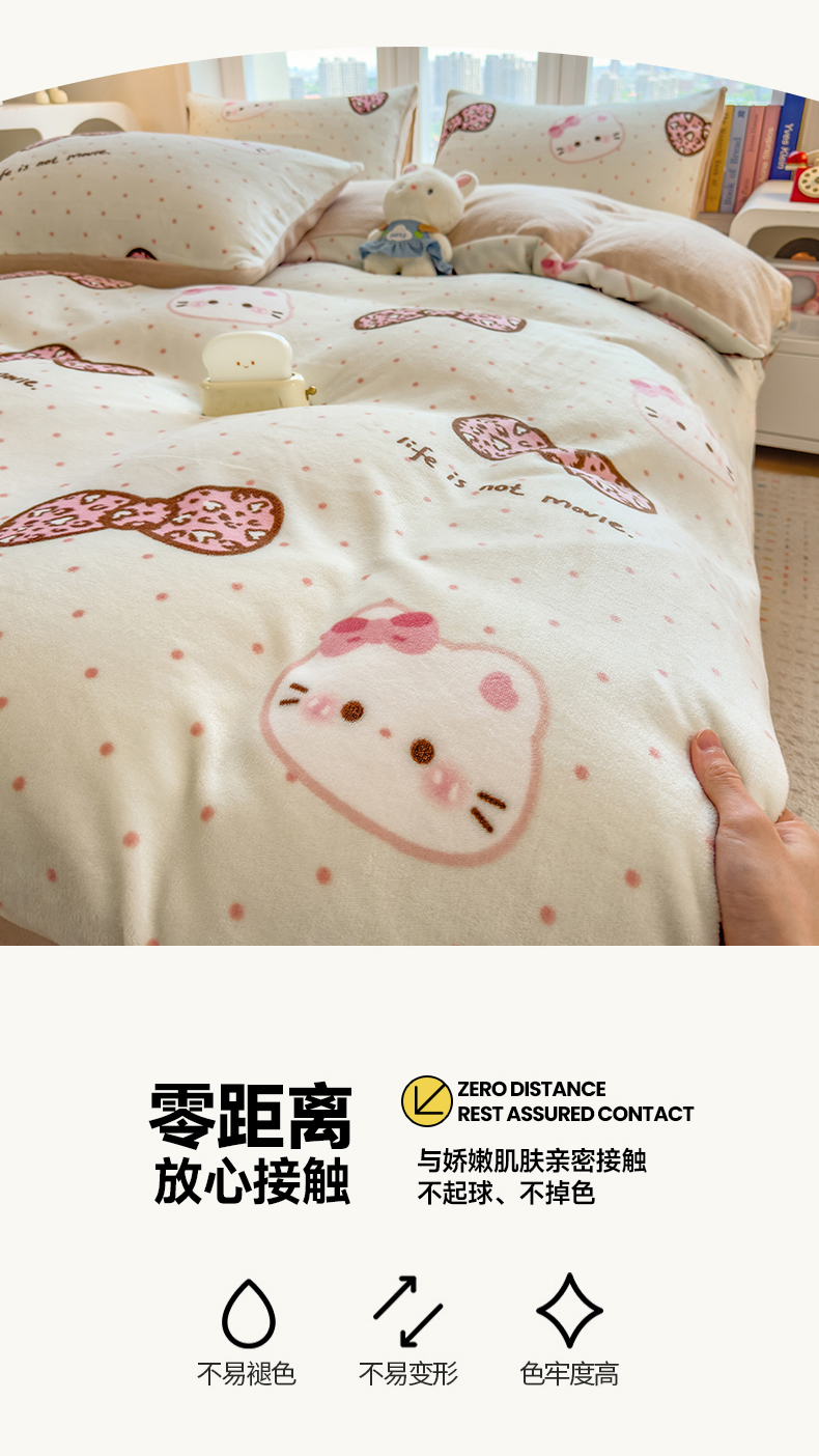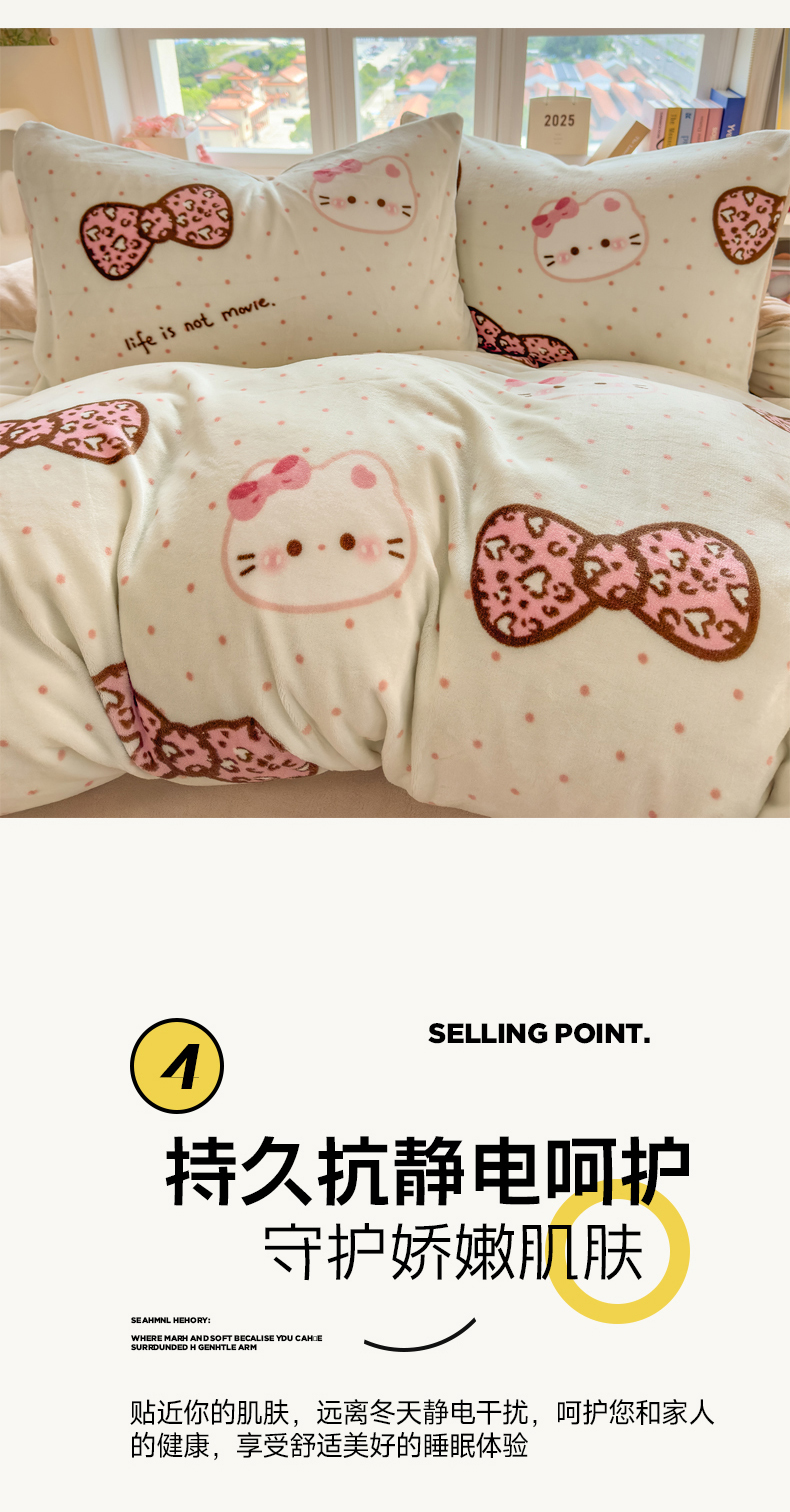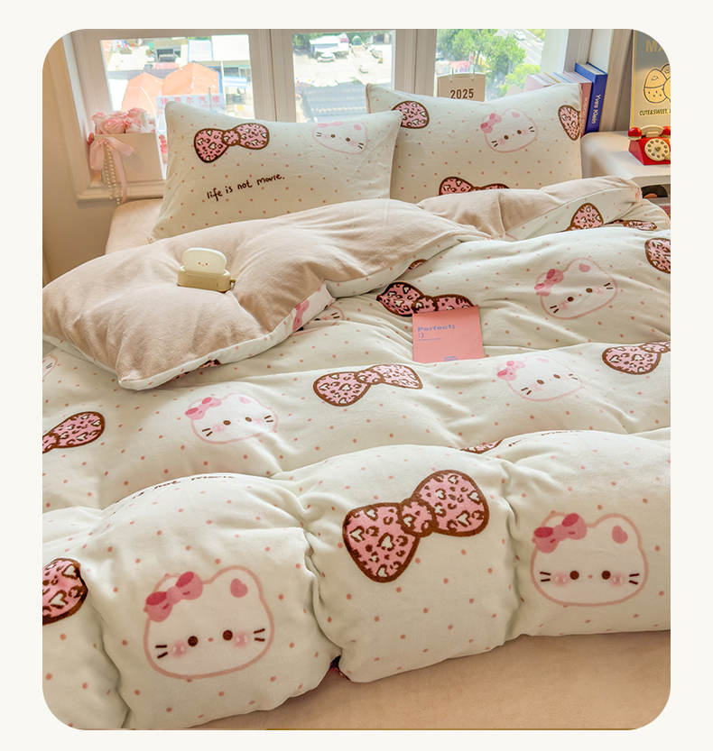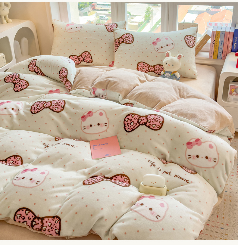 当前位置: 91家纺网 > 商品网购 > 床品套件 > 四件套 > 牛奶绒四件套 > 摩妮卡 摩妮卡 2025新款加厚款小清新牛奶绒印花四件套床单款床笠单被套 蝴蝶结凯蒂