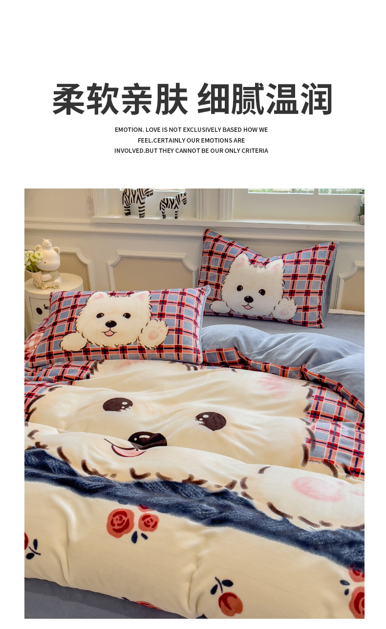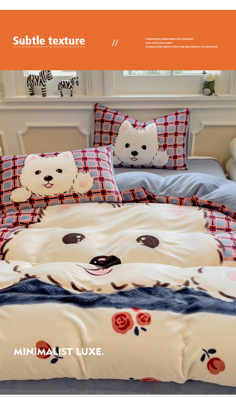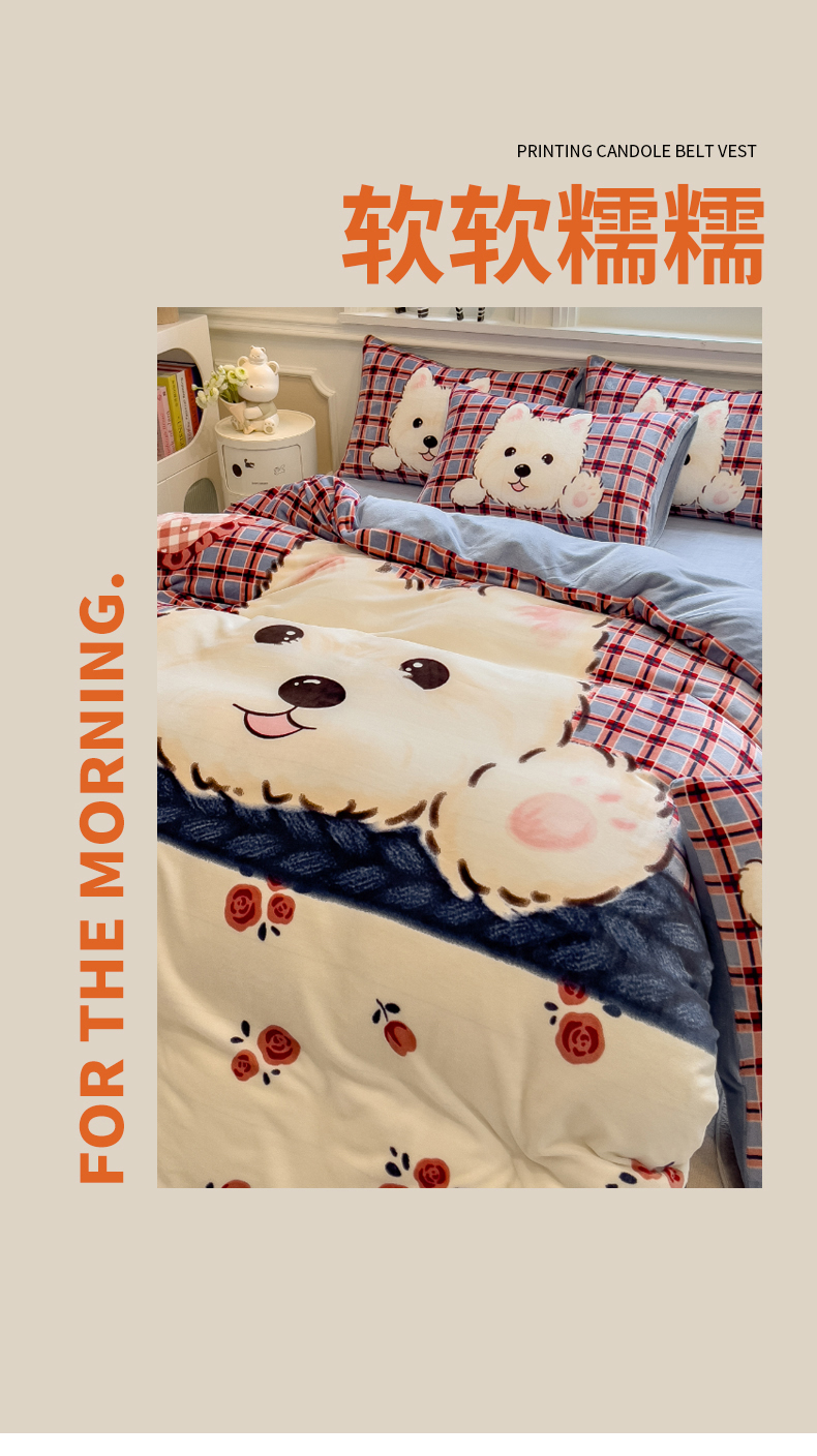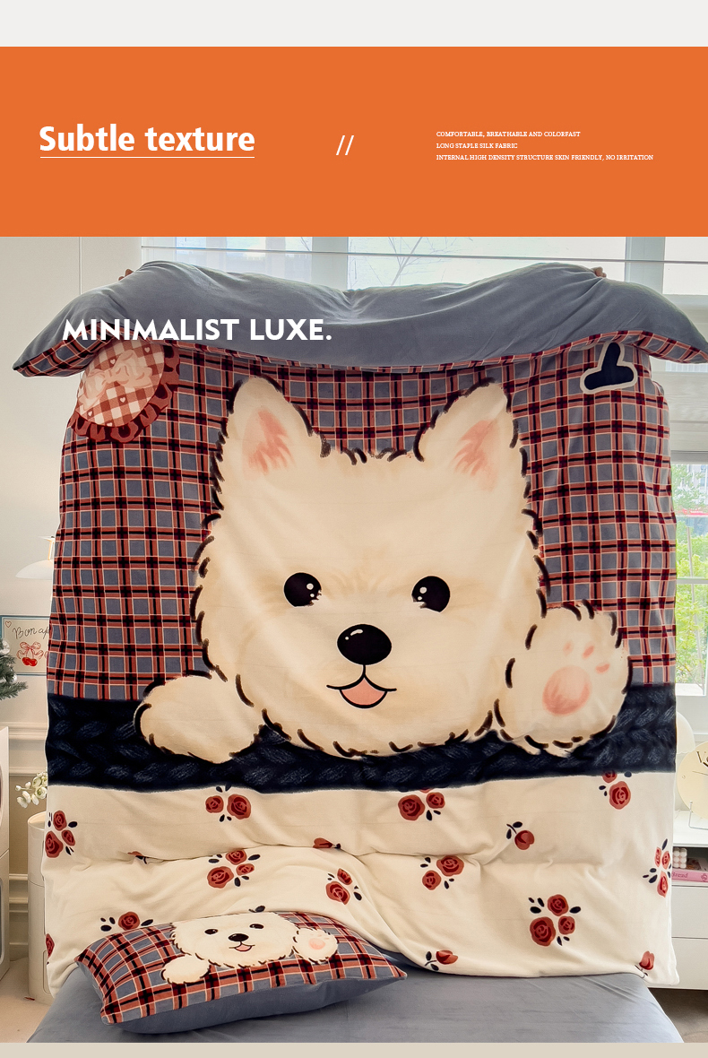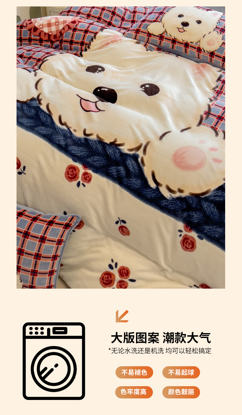 当前位置: 91家纺网 > 商品网购 > 床品套件 > 四件套 > 牛奶绒四件套 > 丝羽坊 2025新款A类大版牛奶绒印花四件套 小萌狗
