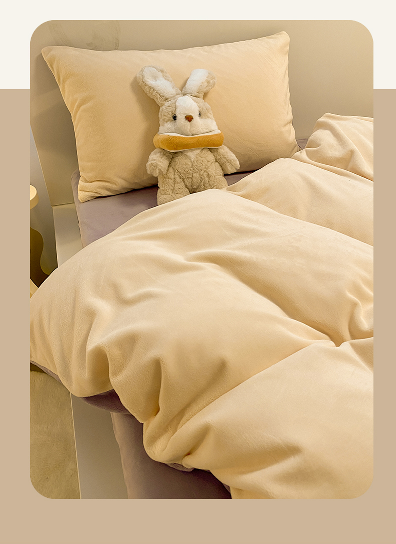 当前位置: 91家纺网 > 商品网购 > 床品套件 > 四件套 > 牛奶绒四件套 > 顺兴家居 2025新款简约纯色双拼牛奶绒四件套(风格二) 奶昔黄+罗兰紫