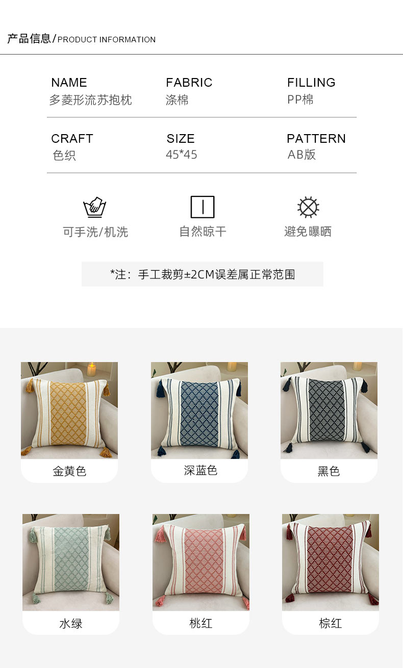 商品名称:新奇异 2025新款波西米亚多菱形流苏抱枕 多菱形-深蓝