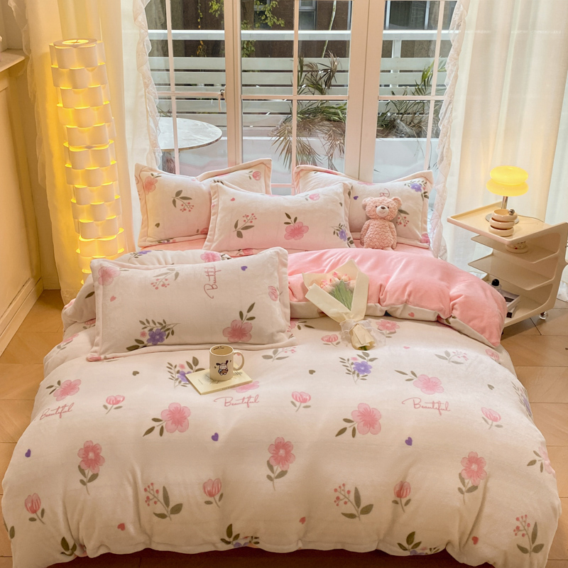 商品名称:喜梦缘家纺 2025新款小版牛奶绒印花四件套系列 花儿朵朵