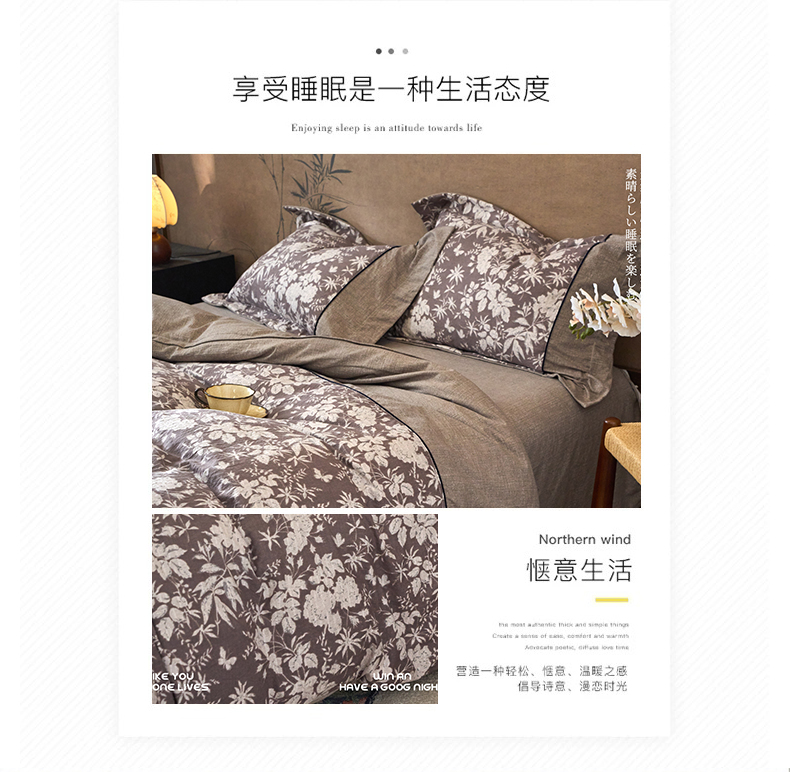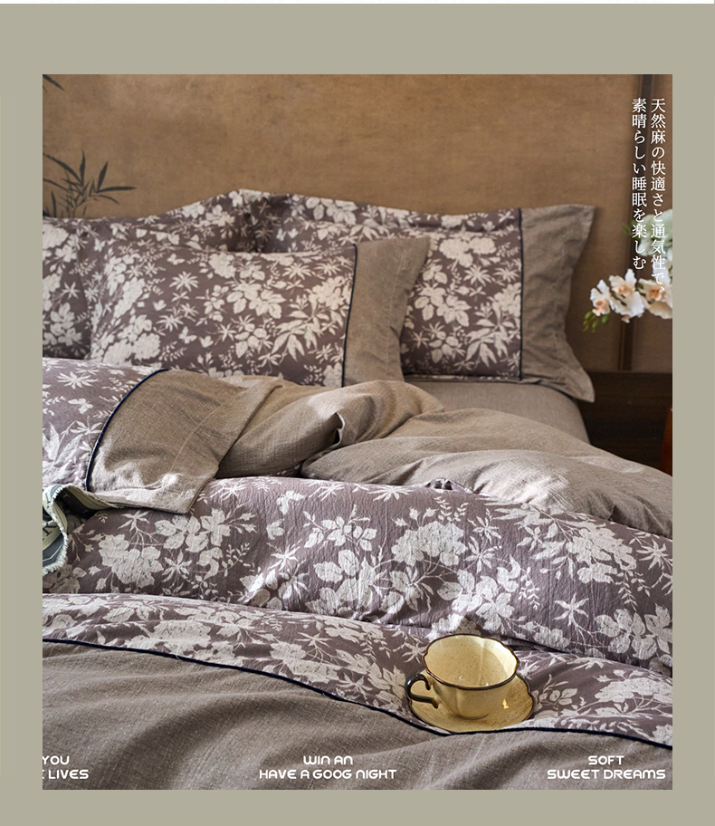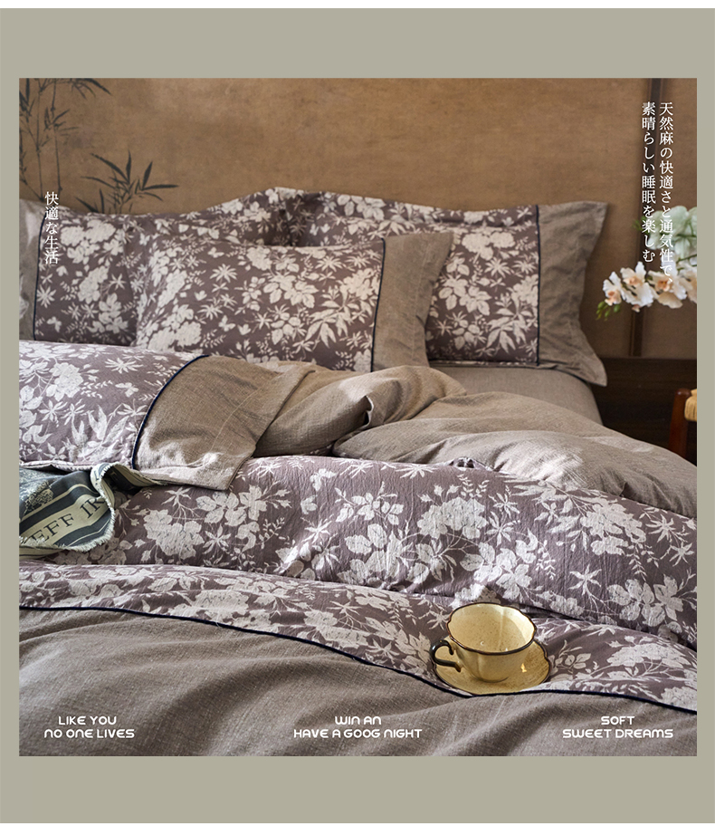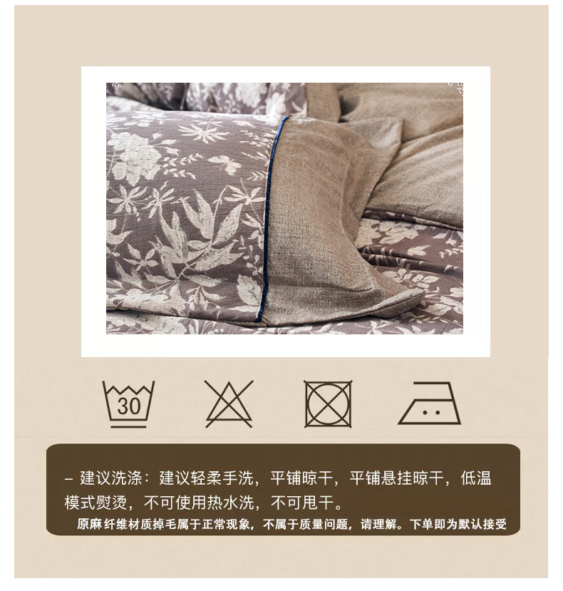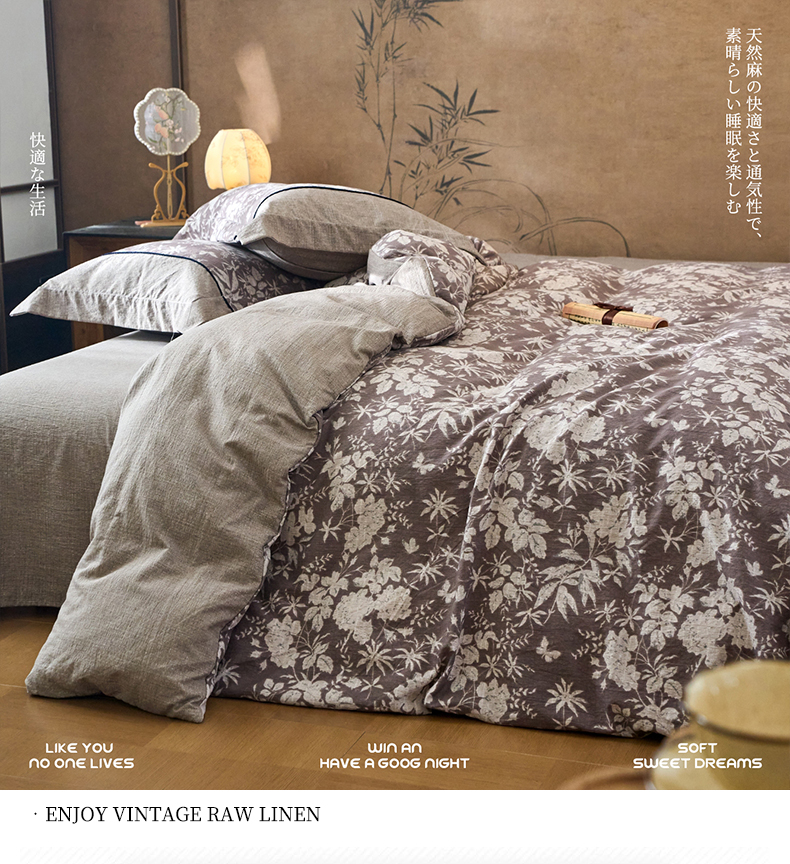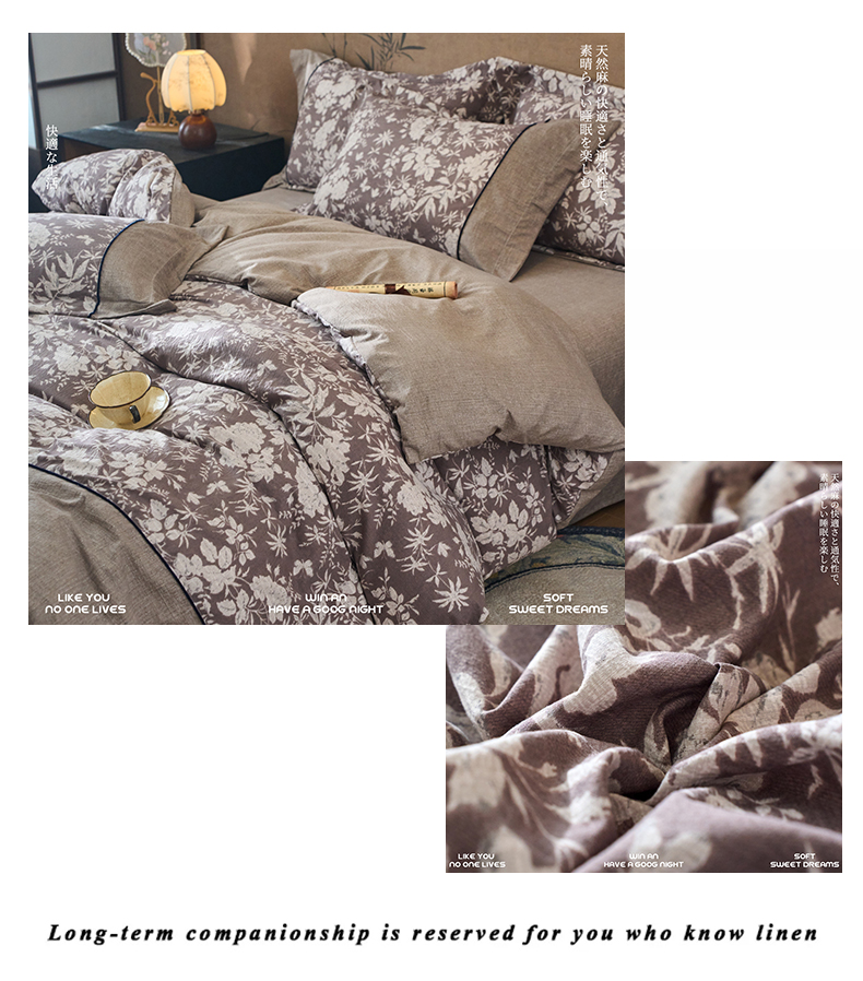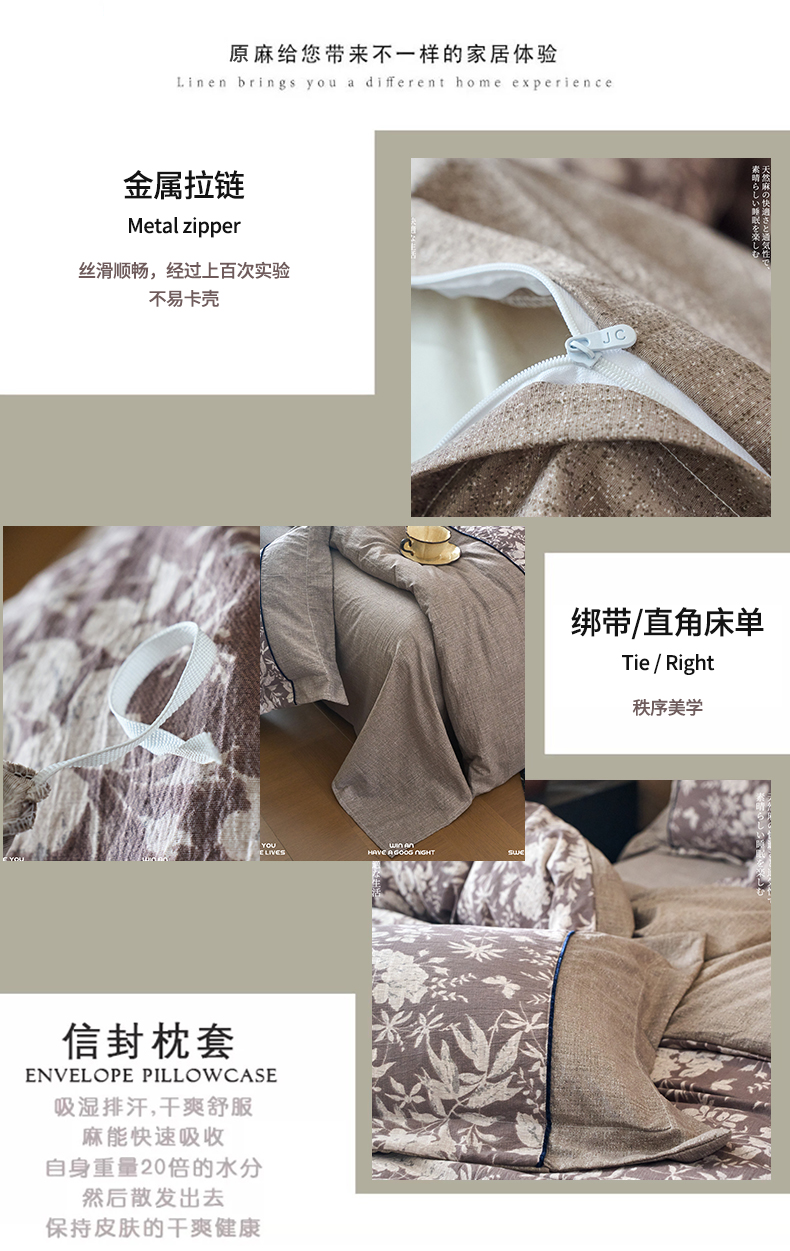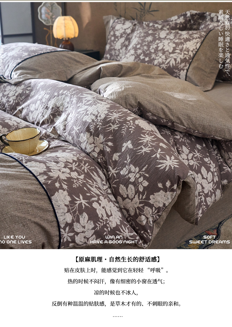 商品名称:悦织湾家纺 2025新款复古原麻四件套天然质朴舒适透气轻奢中式床单床笠款床上用品四件套 复古原麻-山野春花
