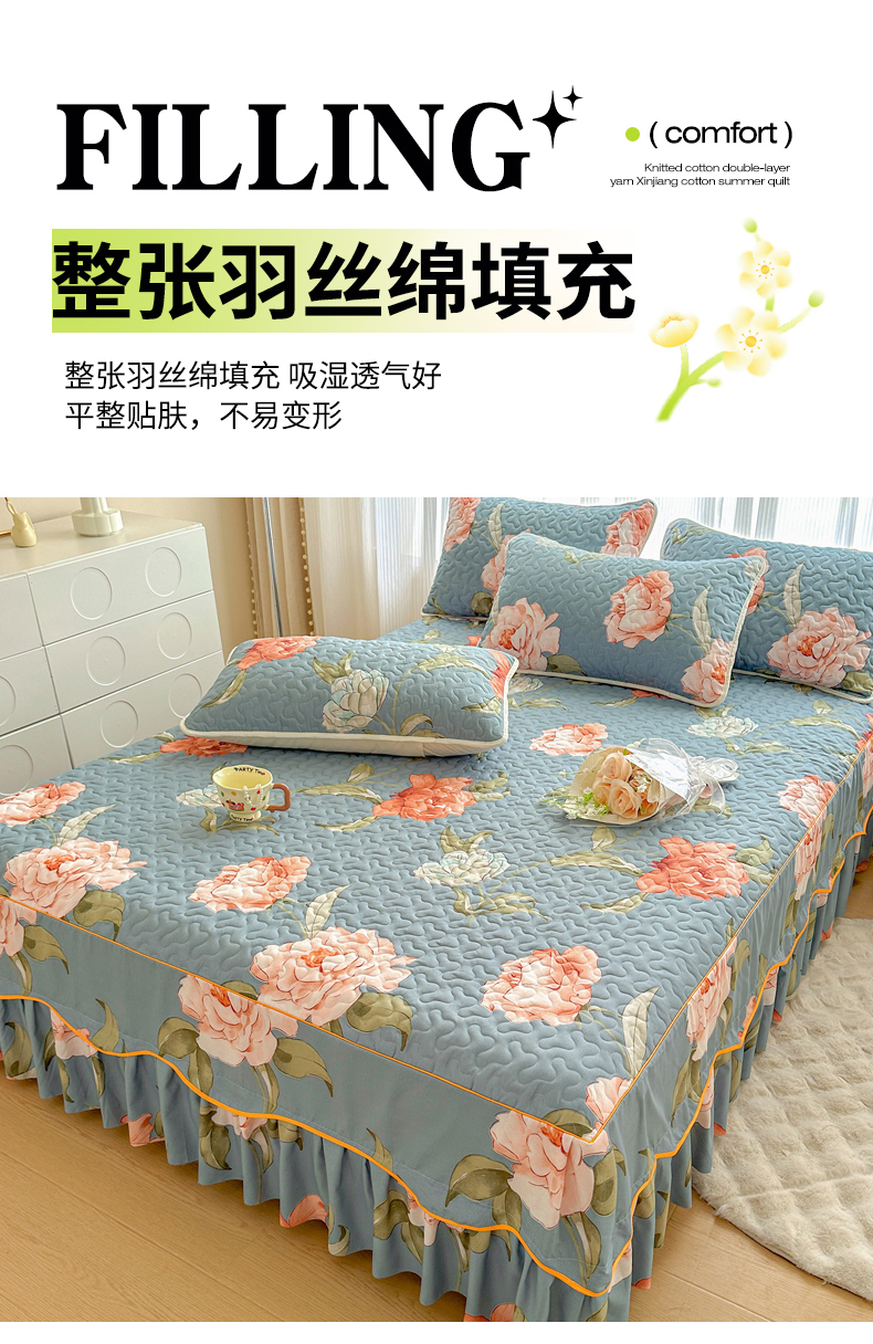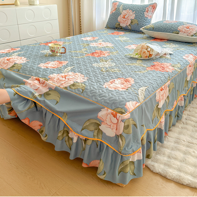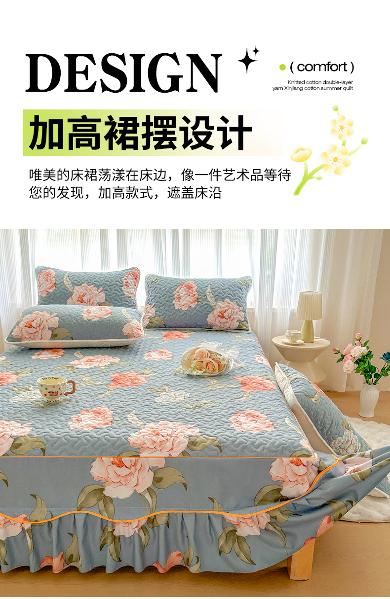 • 91家纺网 家纺一手货源 找家纺 笠裙家纺 2025新款磨毛夹棉S边单件三件套韩版防滑床裙单床裙床裙单件 婉华