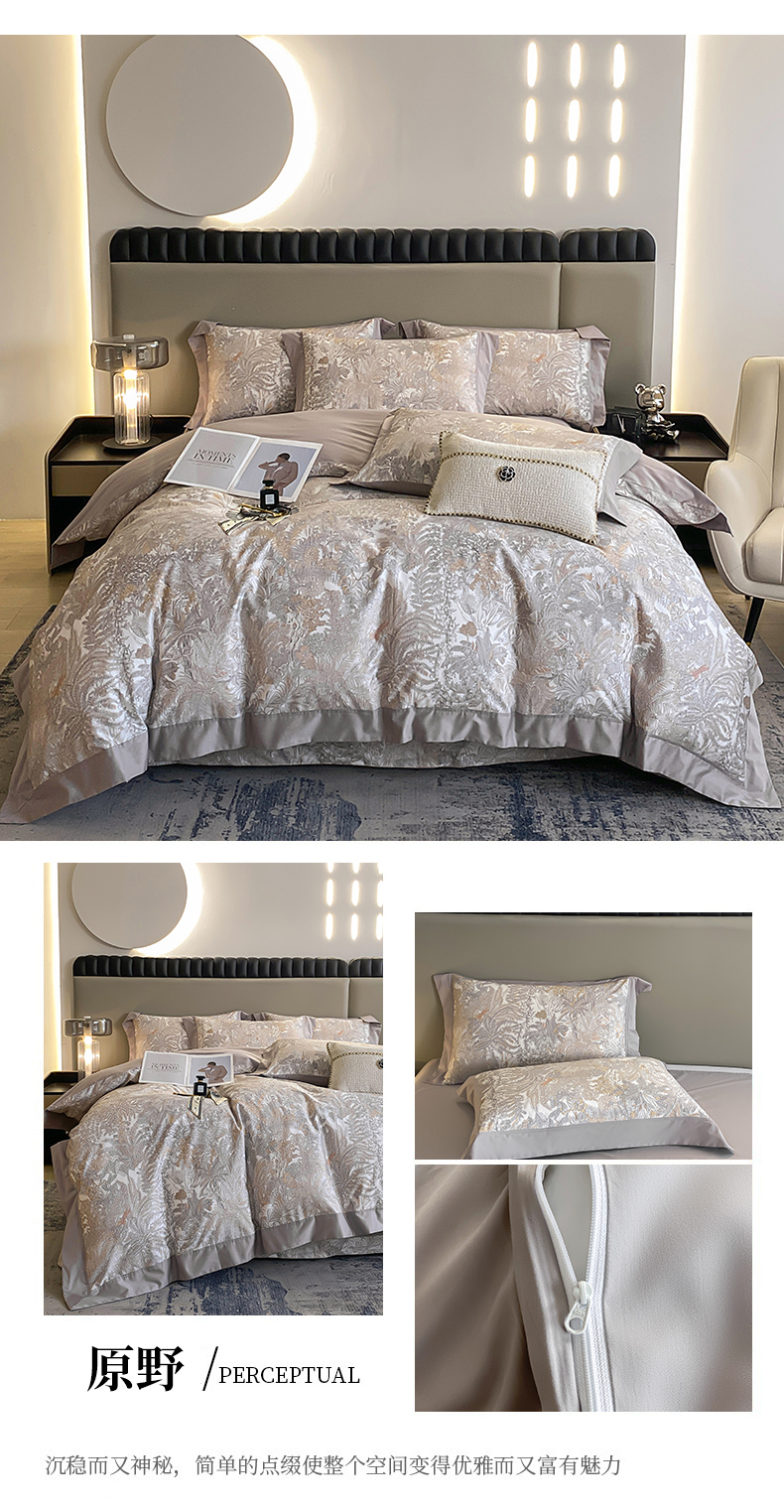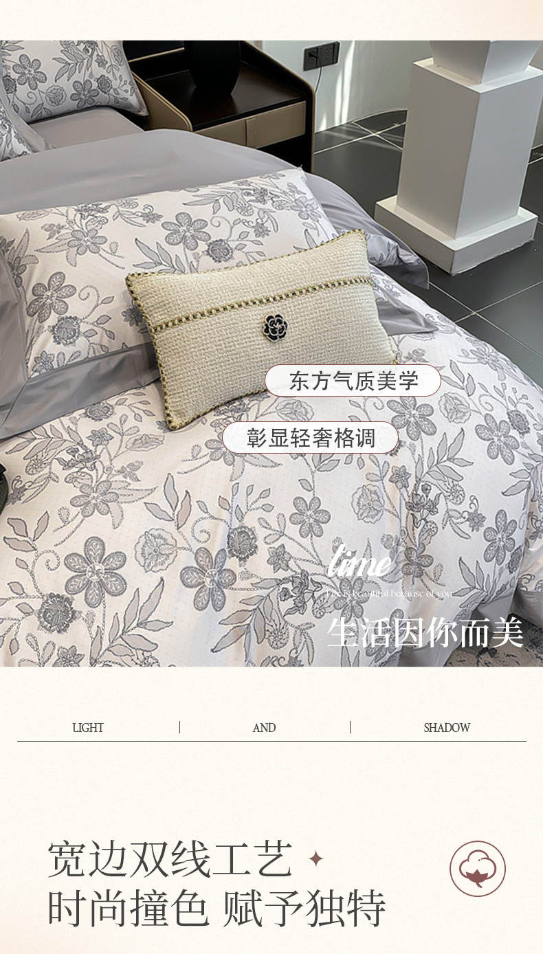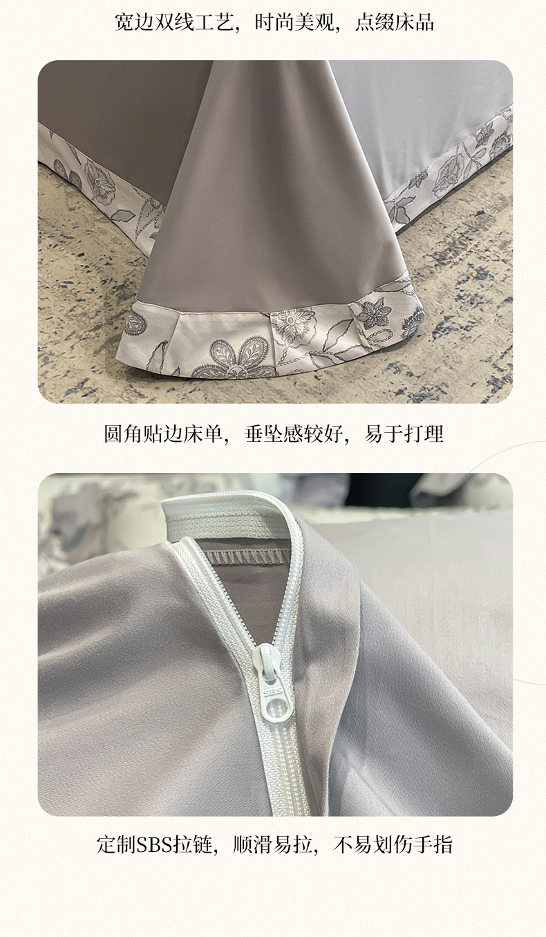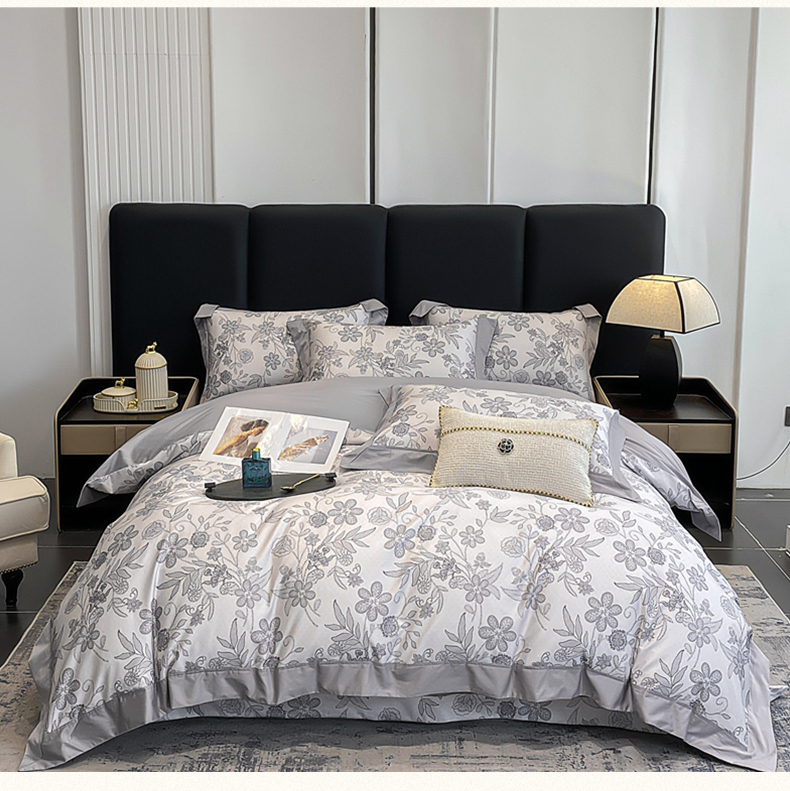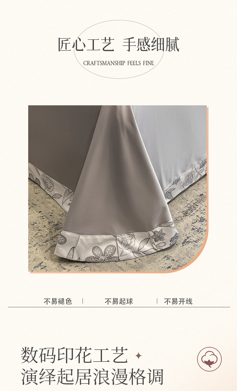 商品名称:娇逸家居 2025新款100支新疆长绒棉纯棉数码印花全棉四件套(专版花型) 初语-灰