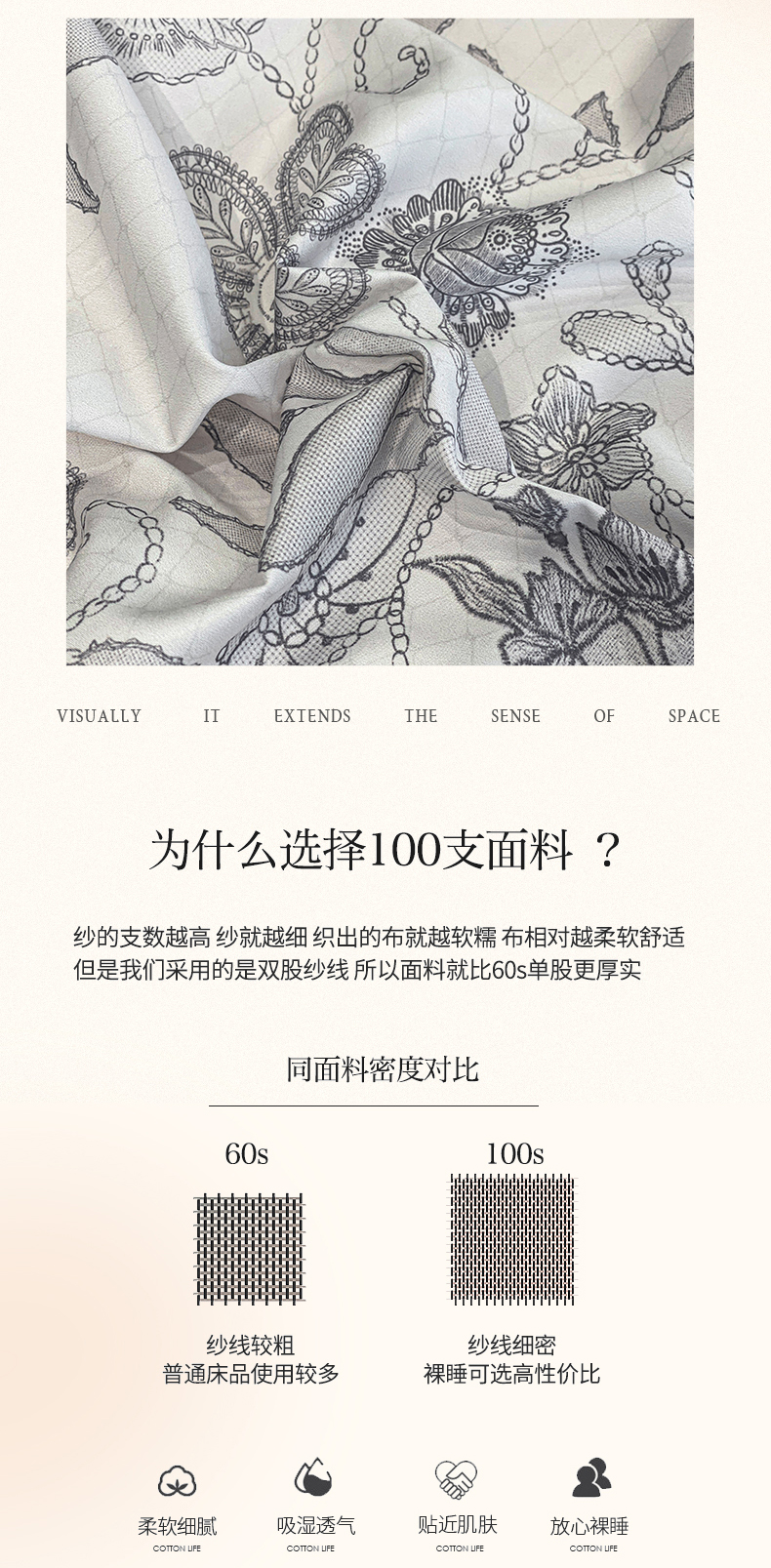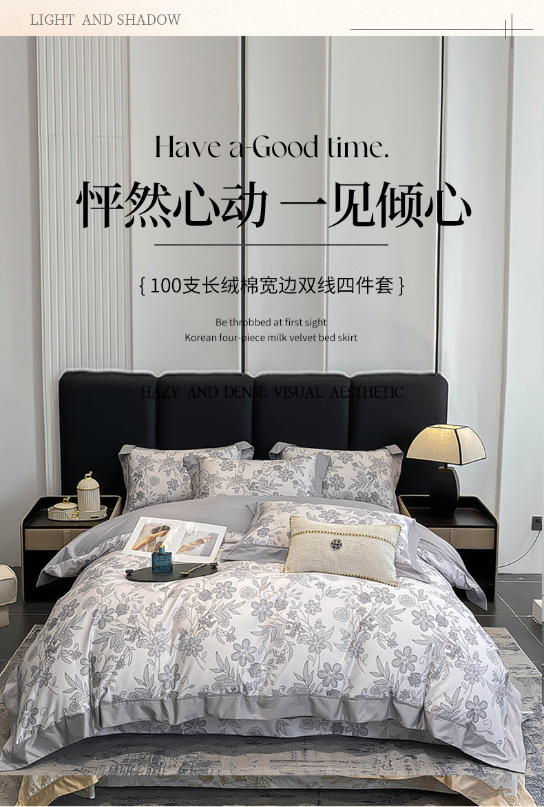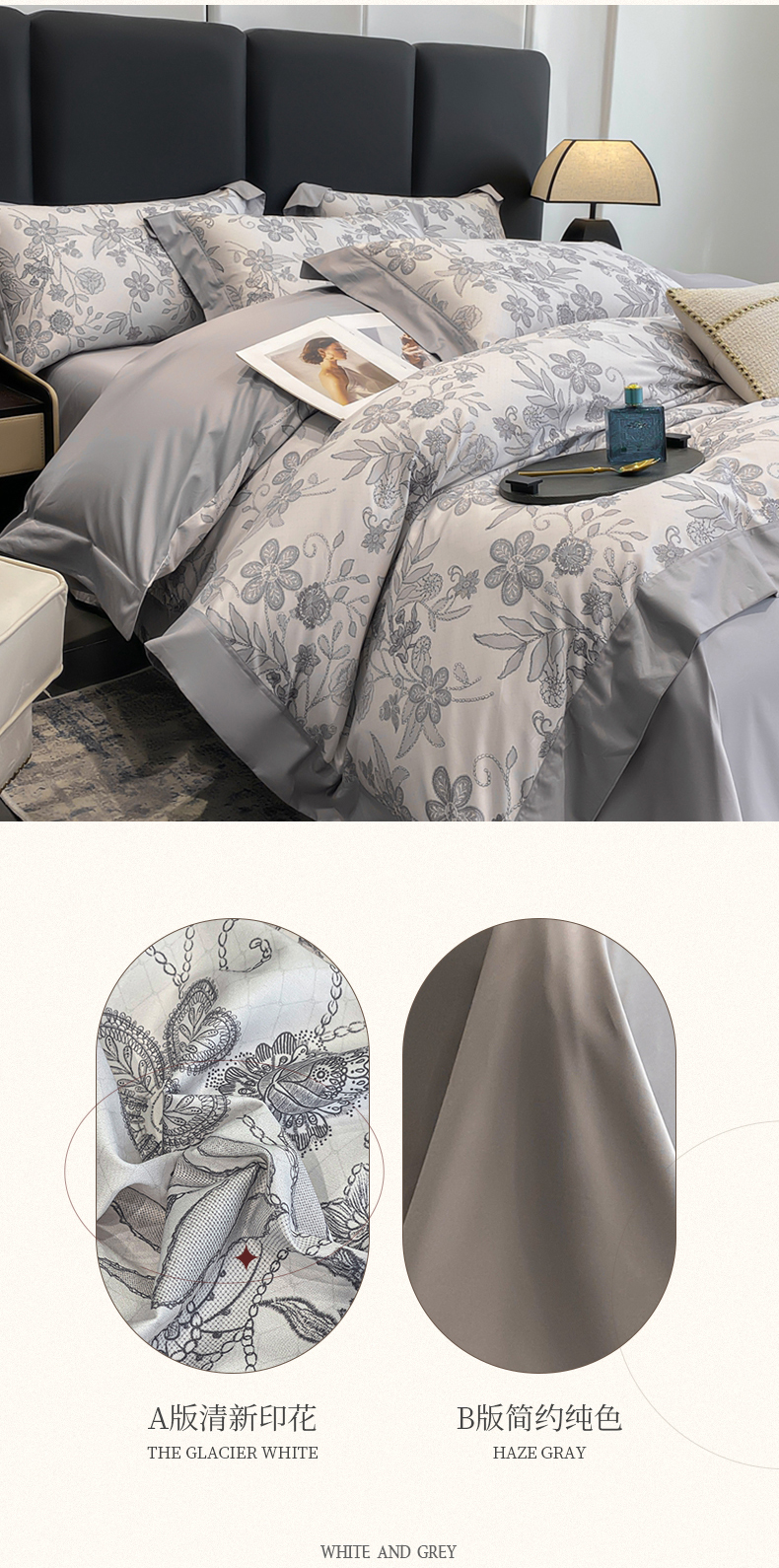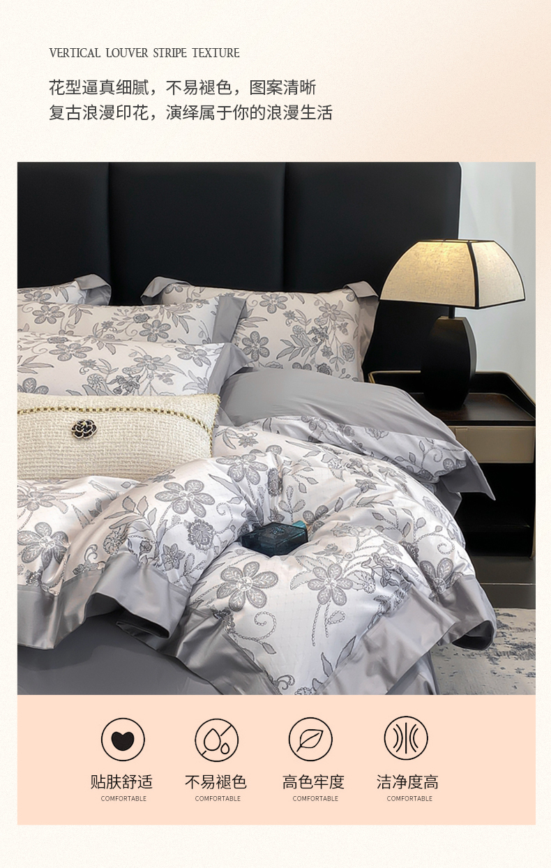 商品名称:娇逸家居 2025新款100支新疆长绒棉纯棉数码印花全棉四件套(专版花型) 初语-灰