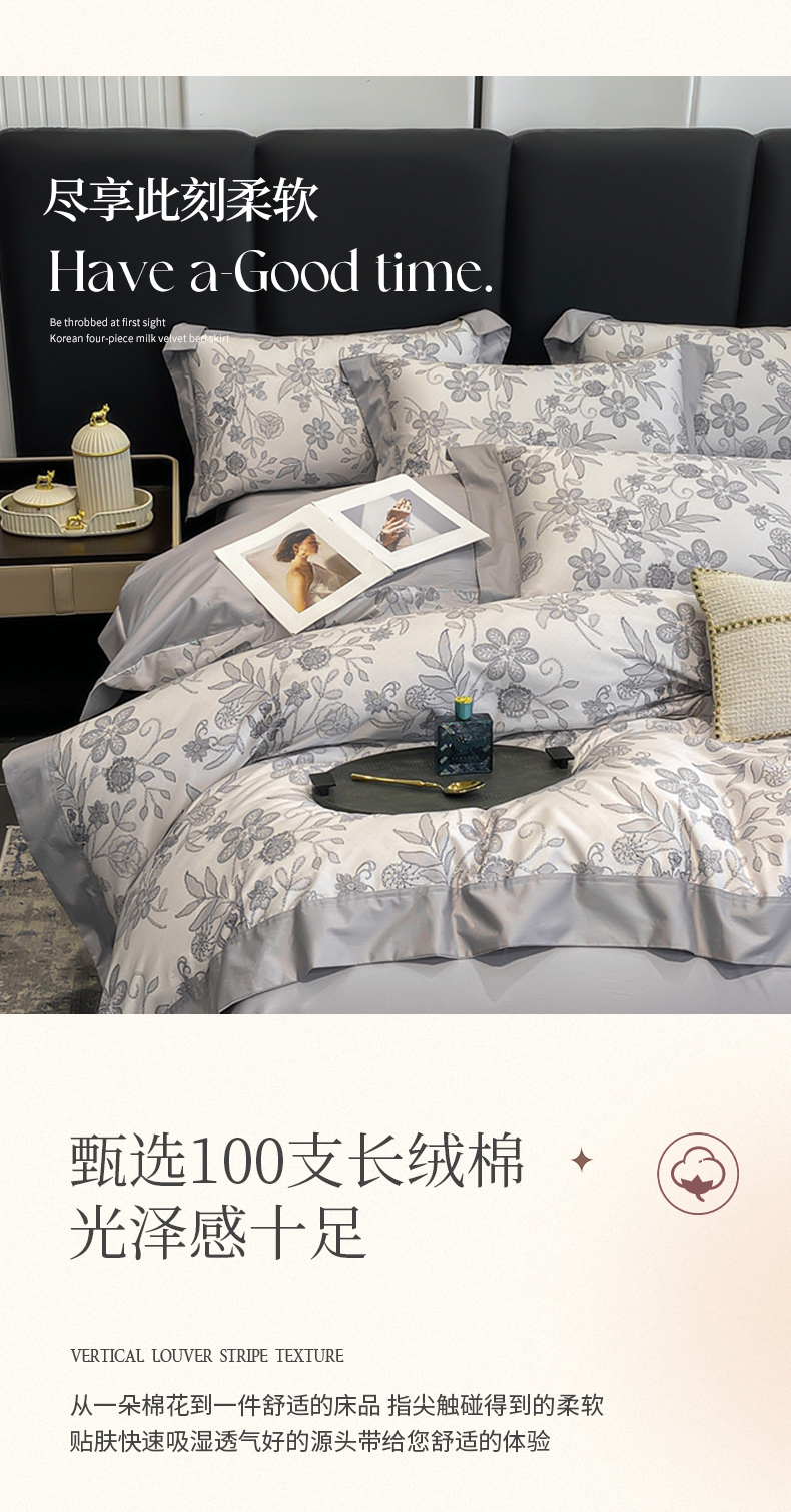 娇逸家居 2025新款100支新疆长绒棉纯棉数码印花全棉四件套(专版花型) 初语-灰