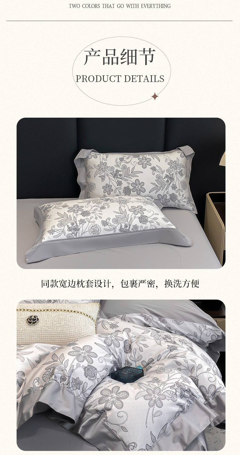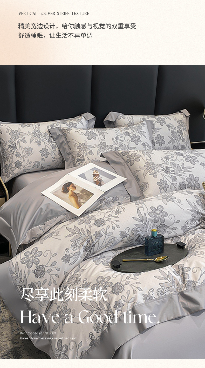 (总)娇逸家居 2025新款高克重A类数码印花牛奶绒双拼边款四件套,采薇灰,扶桑,浅影,秋灵粉,秋灵黄,秋灵绿,舜华粉,采薇米,舜华绿,仙客,栩蝶,璎珞,玉树,芸芙