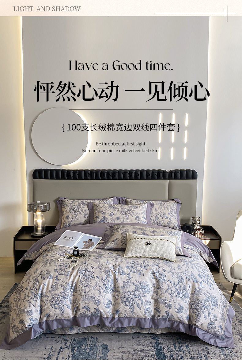 (总)娇逸家居 2025新款高克重A类数码印花牛奶绒双拼边款四件套,采薇灰,扶桑,浅影,秋灵粉,秋灵黄,秋灵绿,舜华粉,采薇米,舜华绿,仙客,栩蝶,璎珞,玉树,芸芙