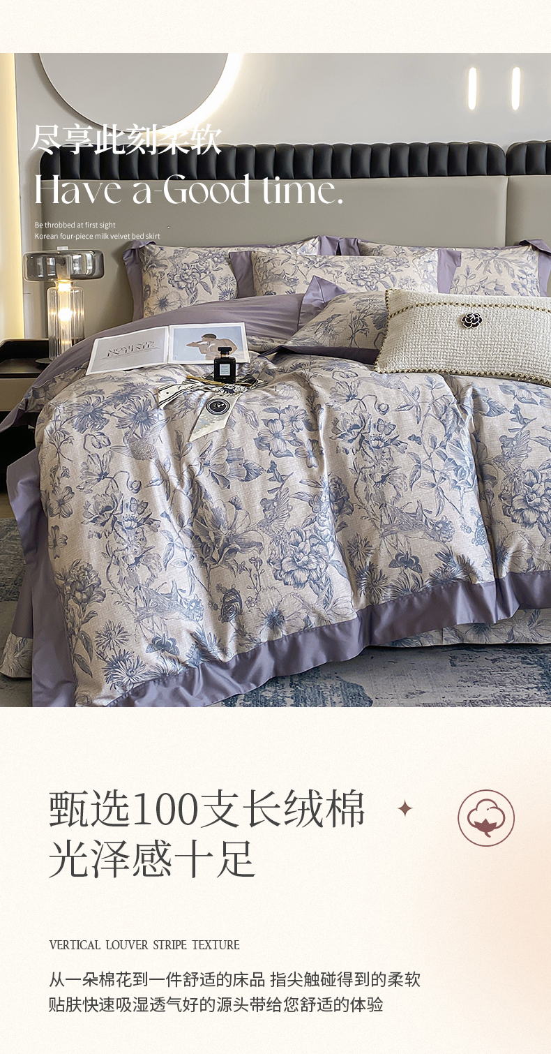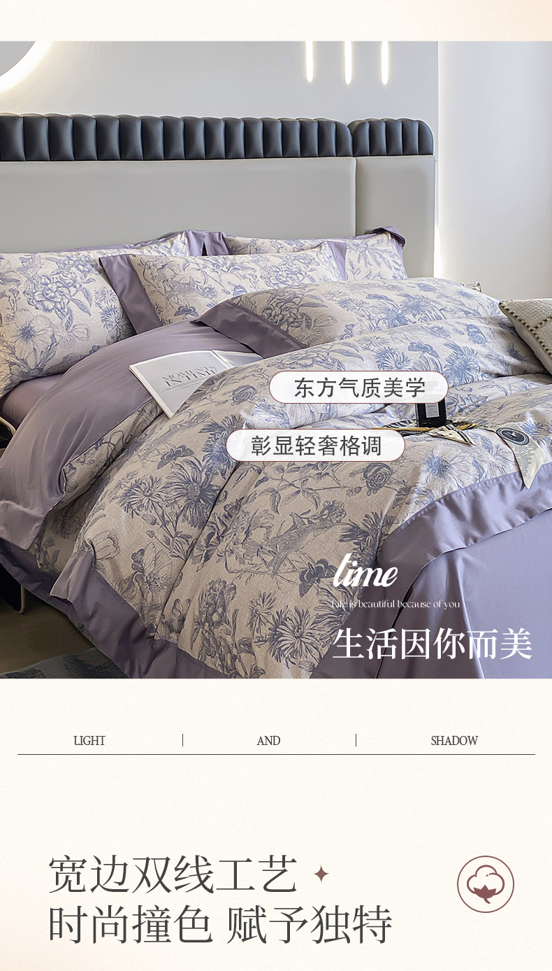 娇逸家居 2025新款100支新疆长绒棉纯棉数码印花全棉四件套(专版花型) 寒烟