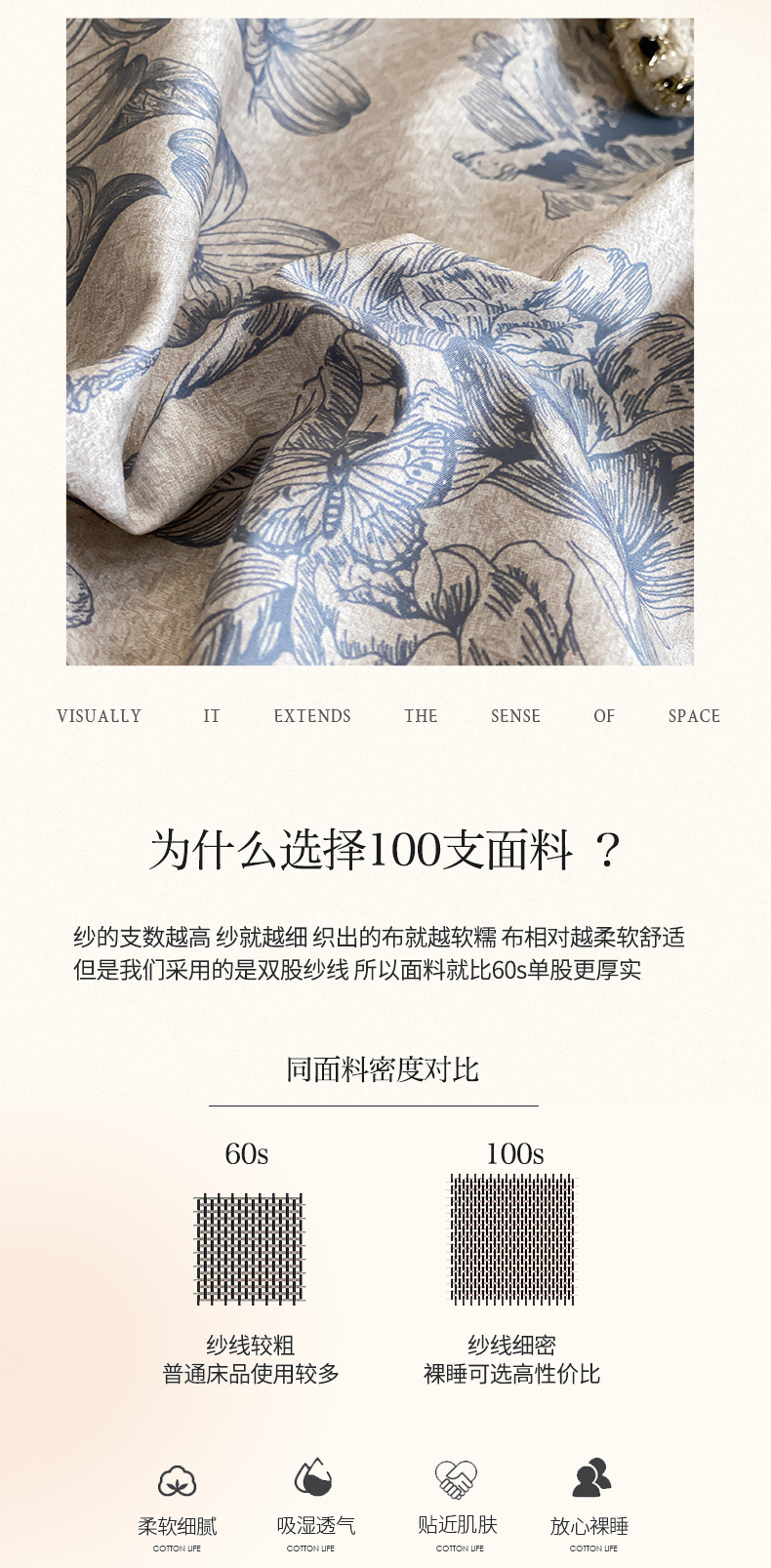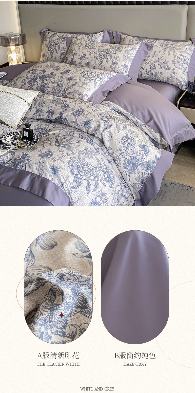 商品名称:娇逸家居 2025新款100支新疆长绒棉纯棉数码印花全棉四件套(专版花型) 寒烟