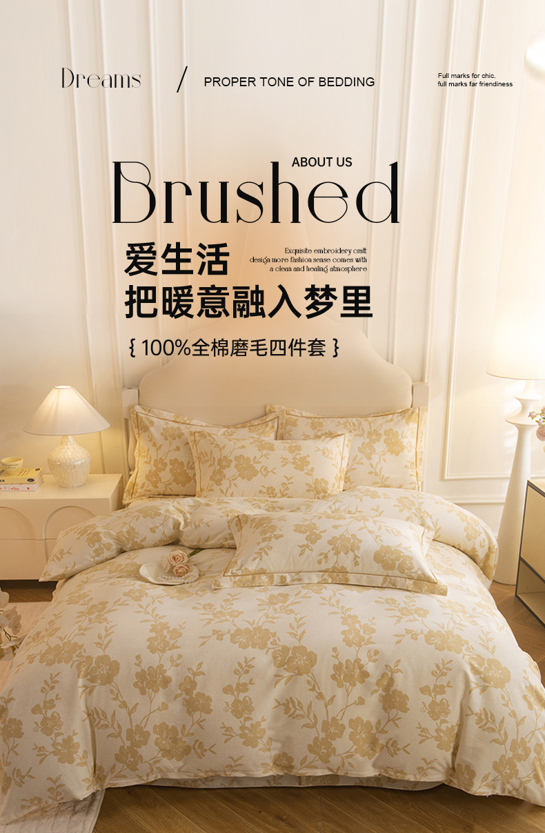 磨毛世家家纺 2025新款生态四件套 小乔人家-黄