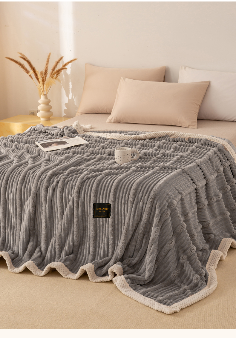 商品名称:宜派家纺 2025新款A类兔毛绒子母条毛毯双面云朵绒毛毯宿舍牛奶绒小被毯轻奢时尚加厚保暖盖毯休闲绒毯毯子 高级灰