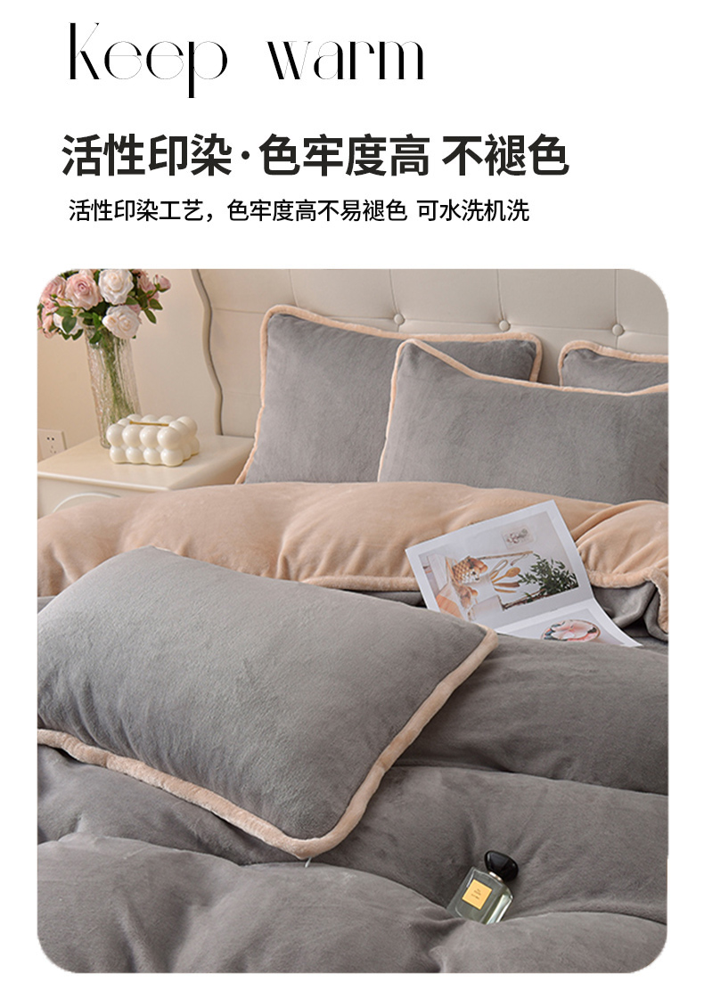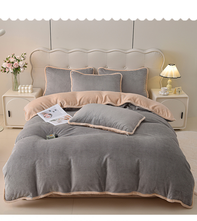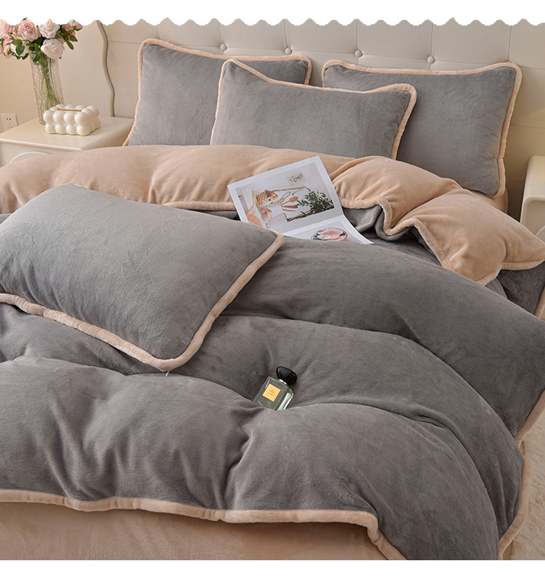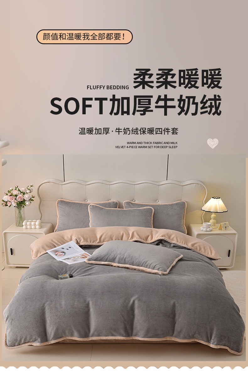 当前位置: 91家纺网 > 商品网购 > 床品套件 > 四件套 > 牛奶绒四件套 > 云恋家纺 加厚牛奶绒四件套简约双面加绒被套罩床单双人家用冬季法兰绒--简约款 简约-灰拼金