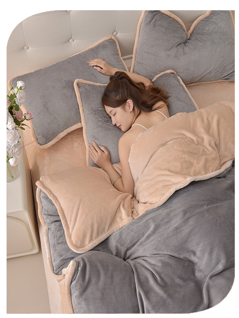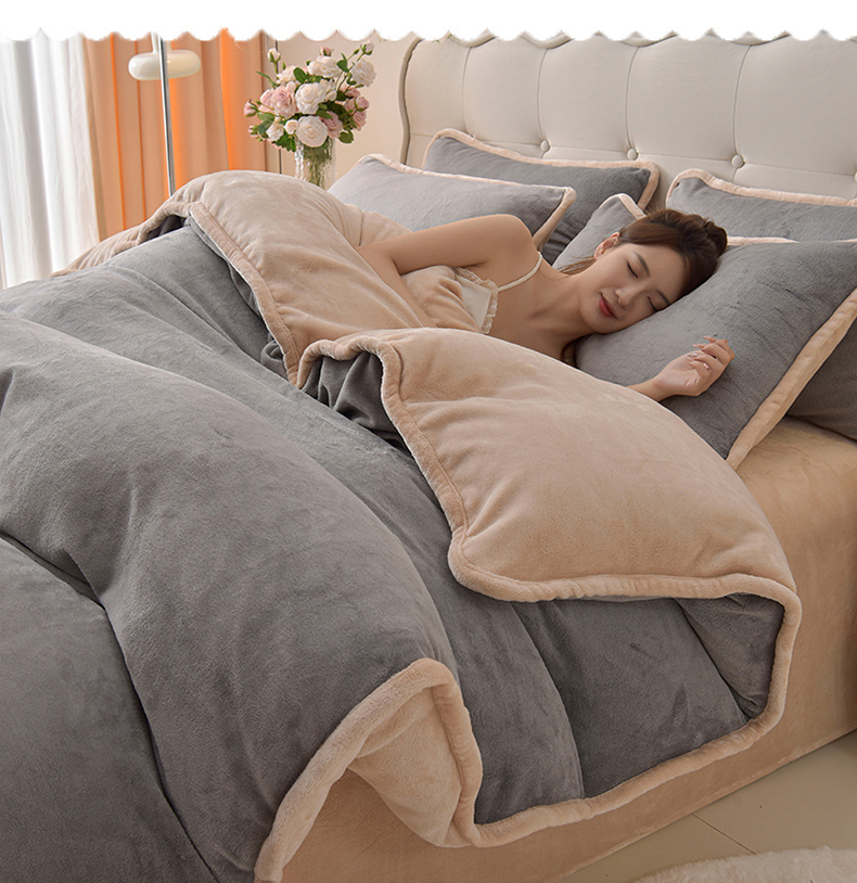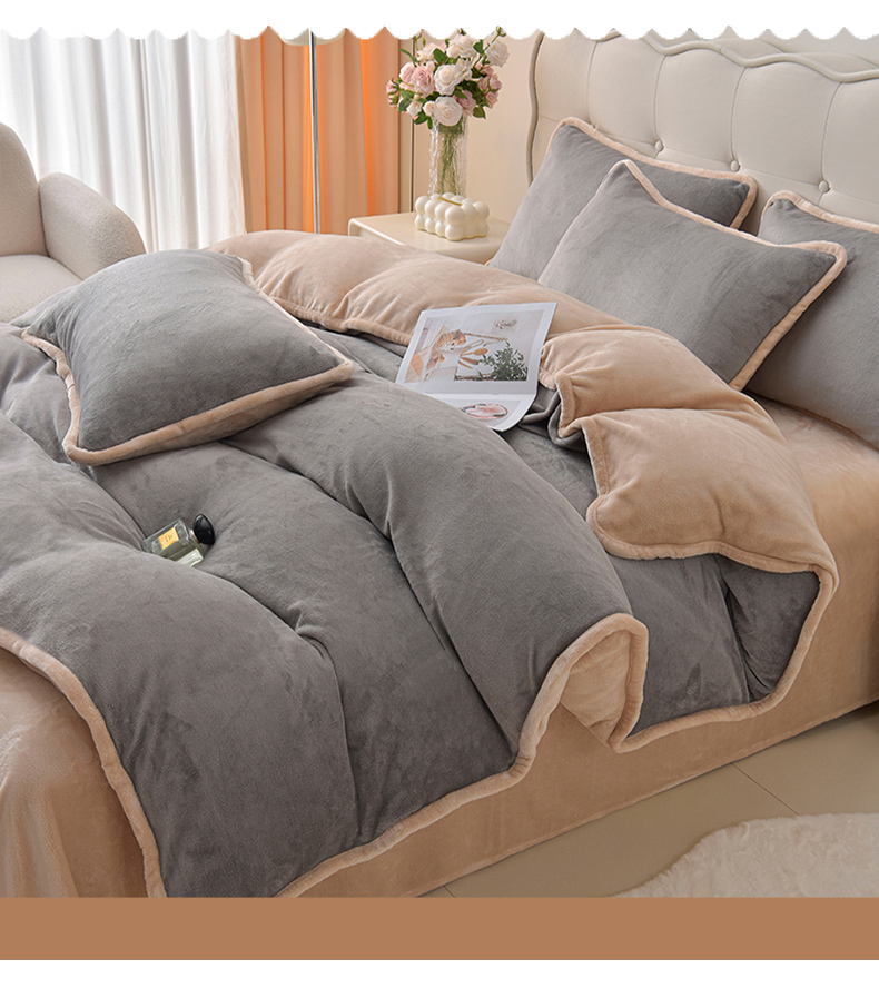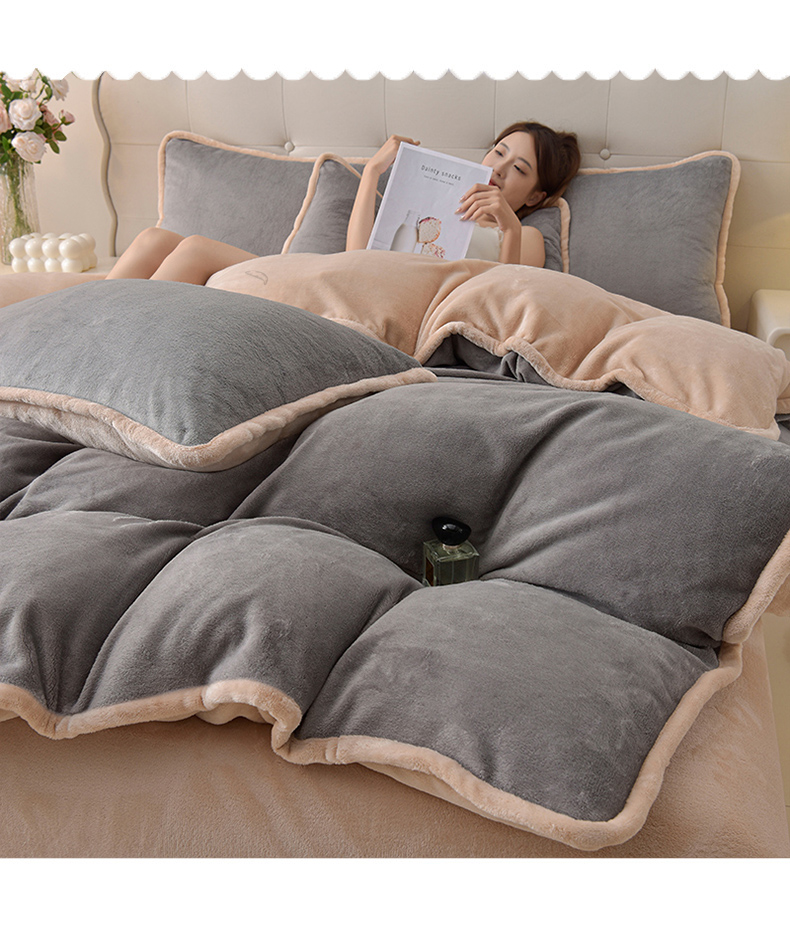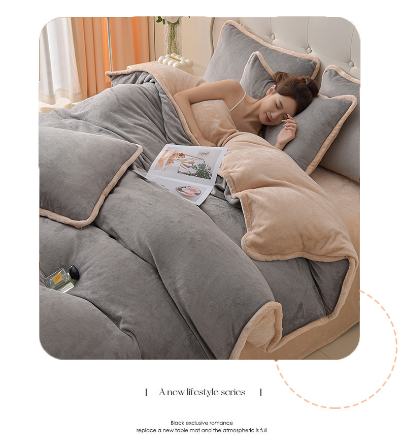 当前位置: 91家纺网 > 商品网购 > 床品套件 > 四件套 > 牛奶绒四件套 > 云恋家纺 加厚牛奶绒四件套简约双面加绒被套罩床单双人家用冬季法兰绒--简约款 简约-灰拼金