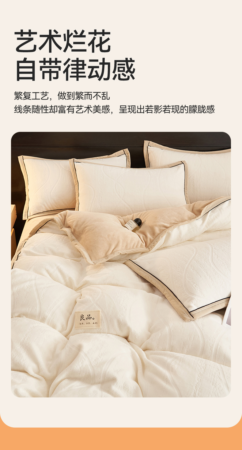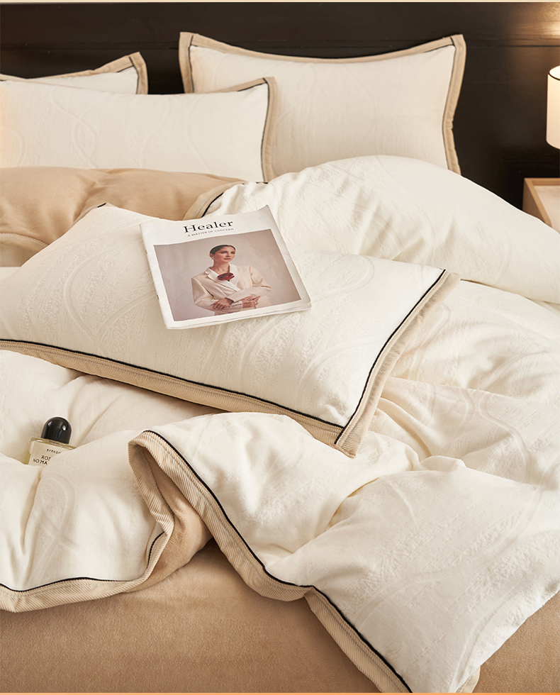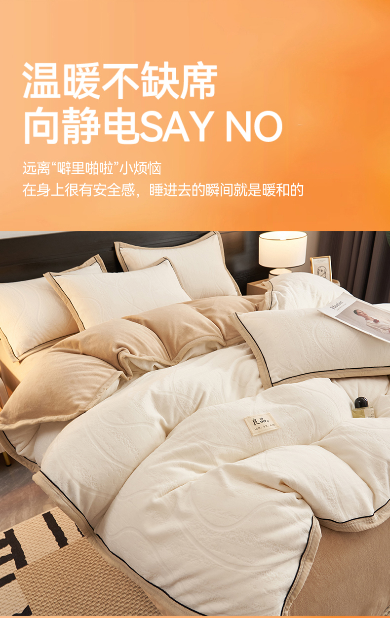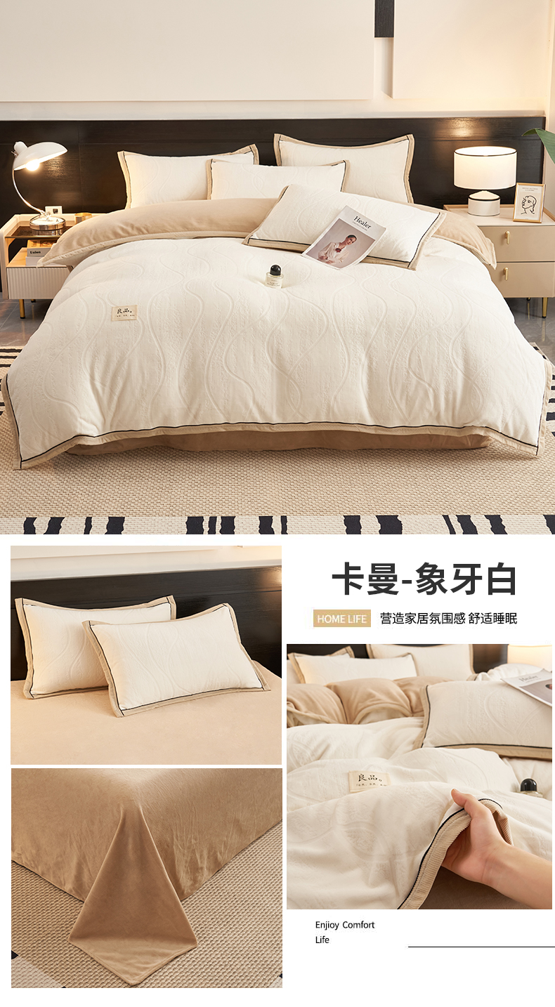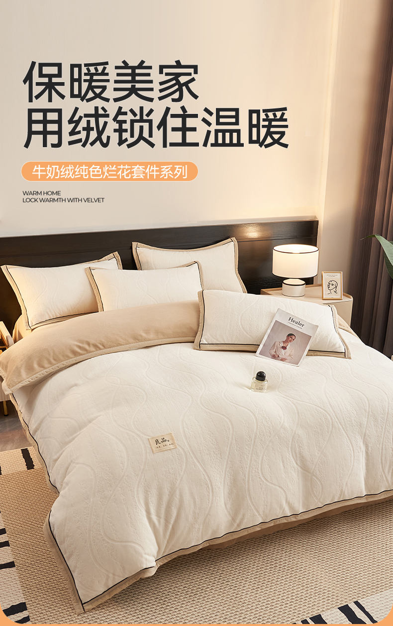 当前位置: 91家纺网 > 商品网购 > 床品套件 > 四件套 > 牛奶绒四件套 > 恒爱家纺 2025新款牛奶绒纯色烂花四件套 卡曼-象牙白