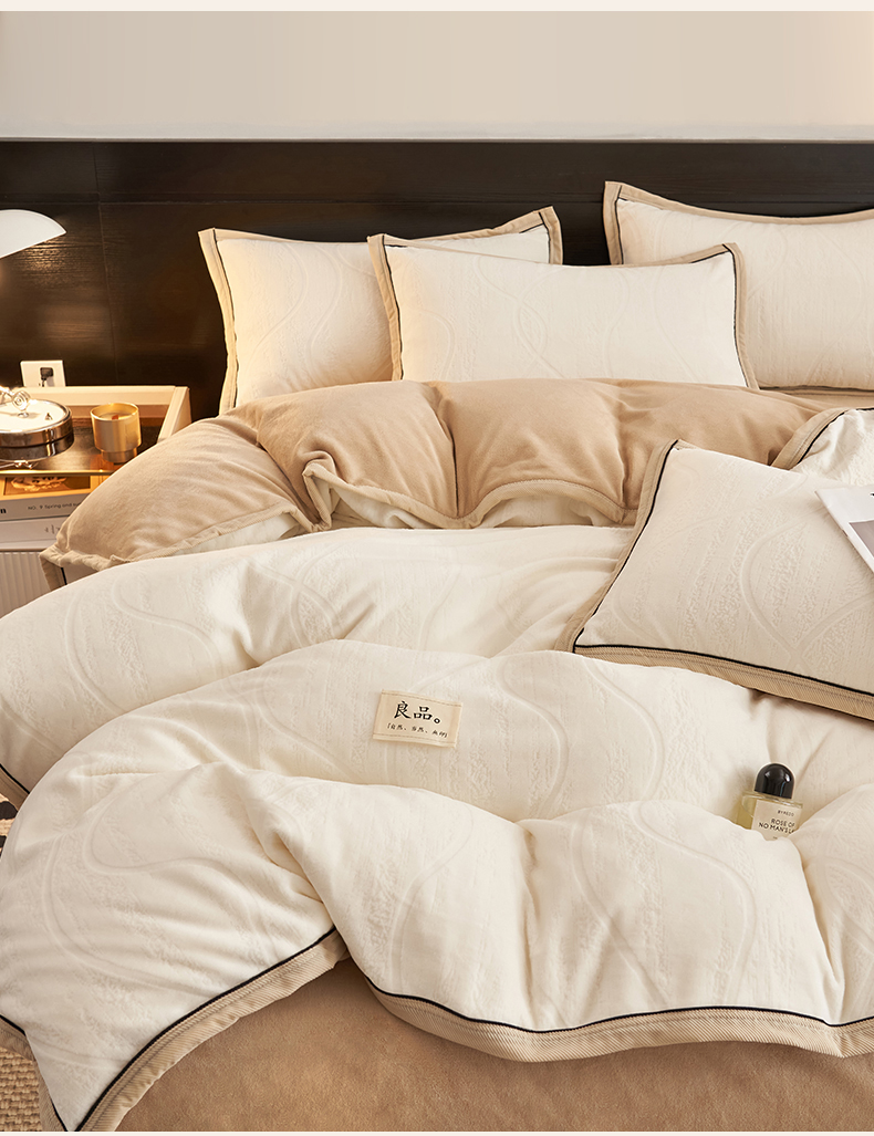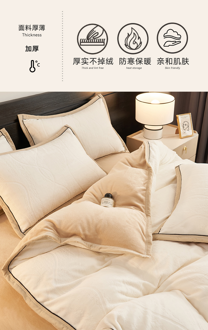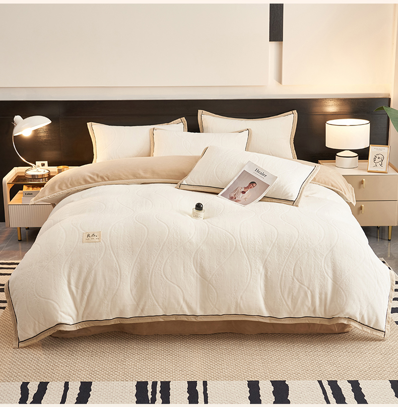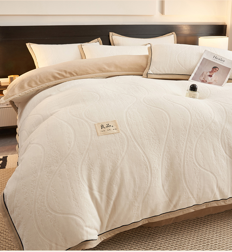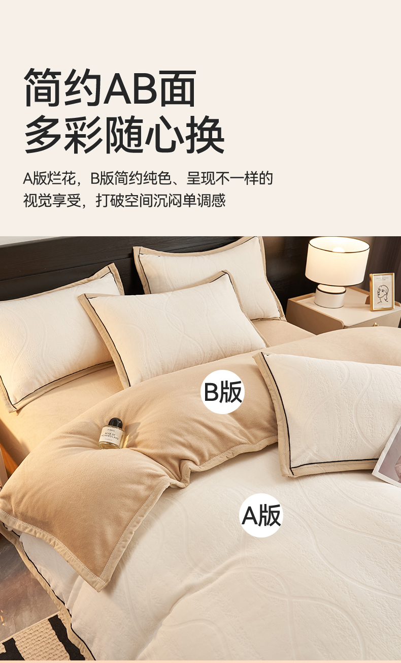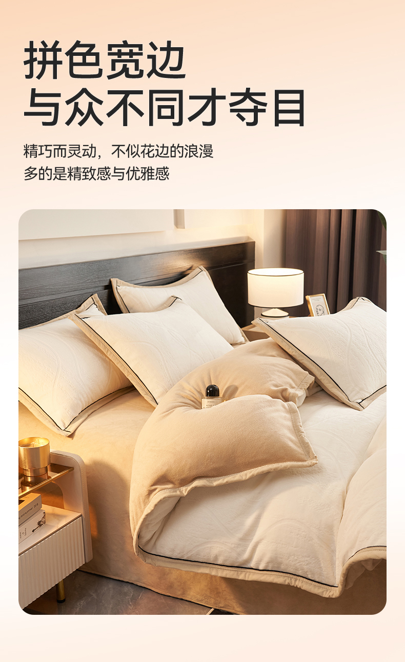 当前位置: 91家纺网 > 商品网购 > 床品套件 > 四件套 > 牛奶绒四件套 > 恒爱家纺 2025新款牛奶绒纯色烂花四件套 卡曼-象牙白
