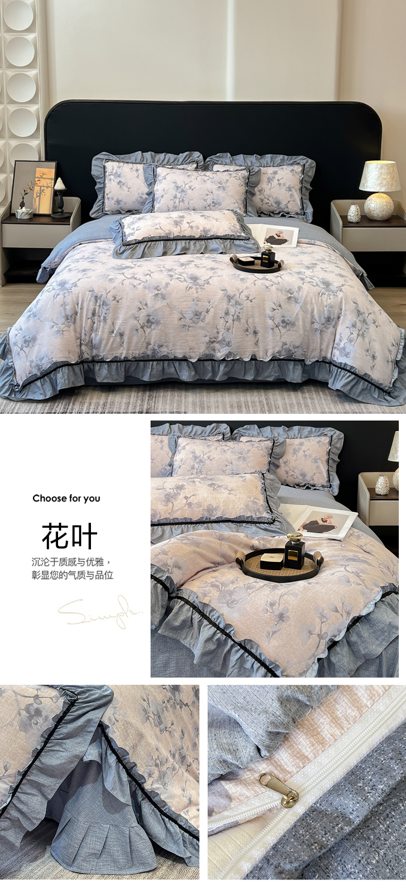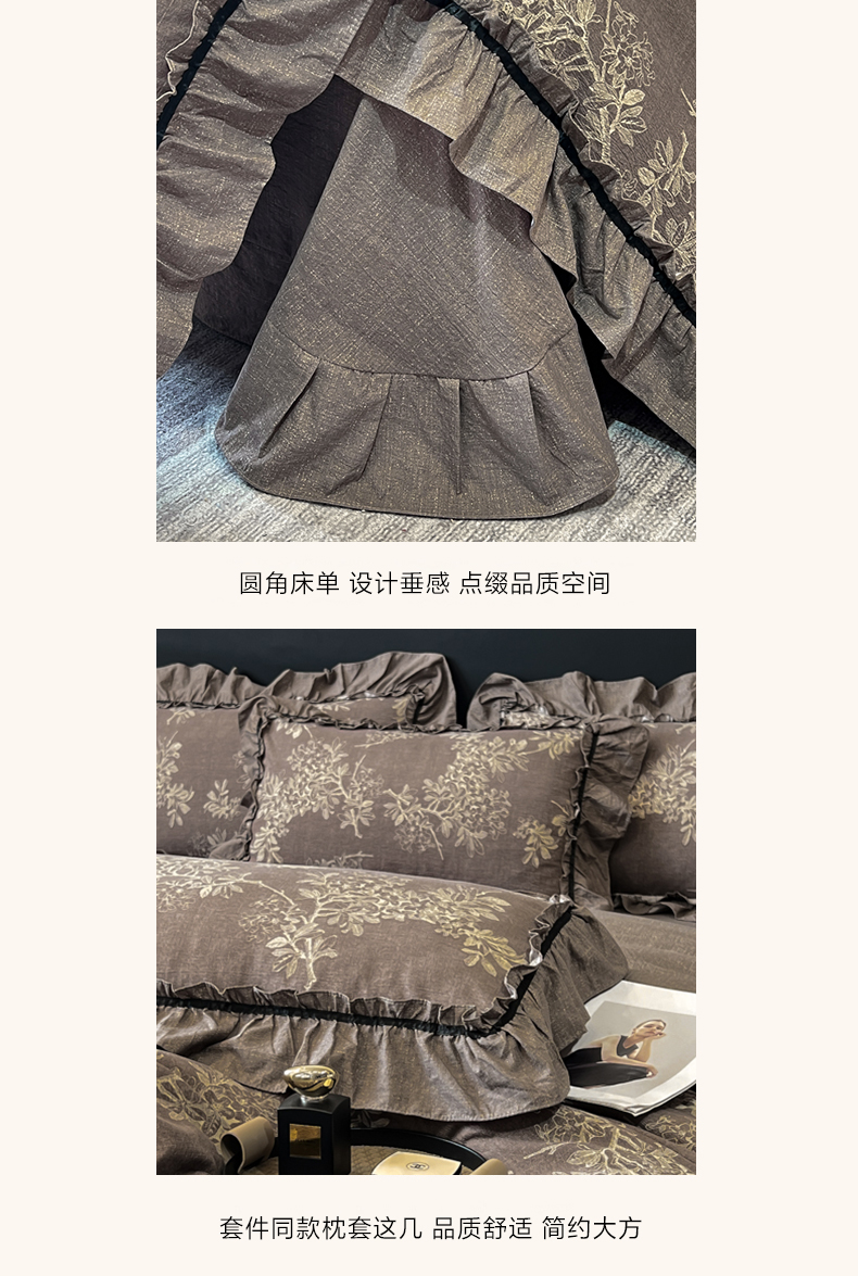 商品名称:玉海棠家纺 2025新款法式花边棉麻四件套 花叶