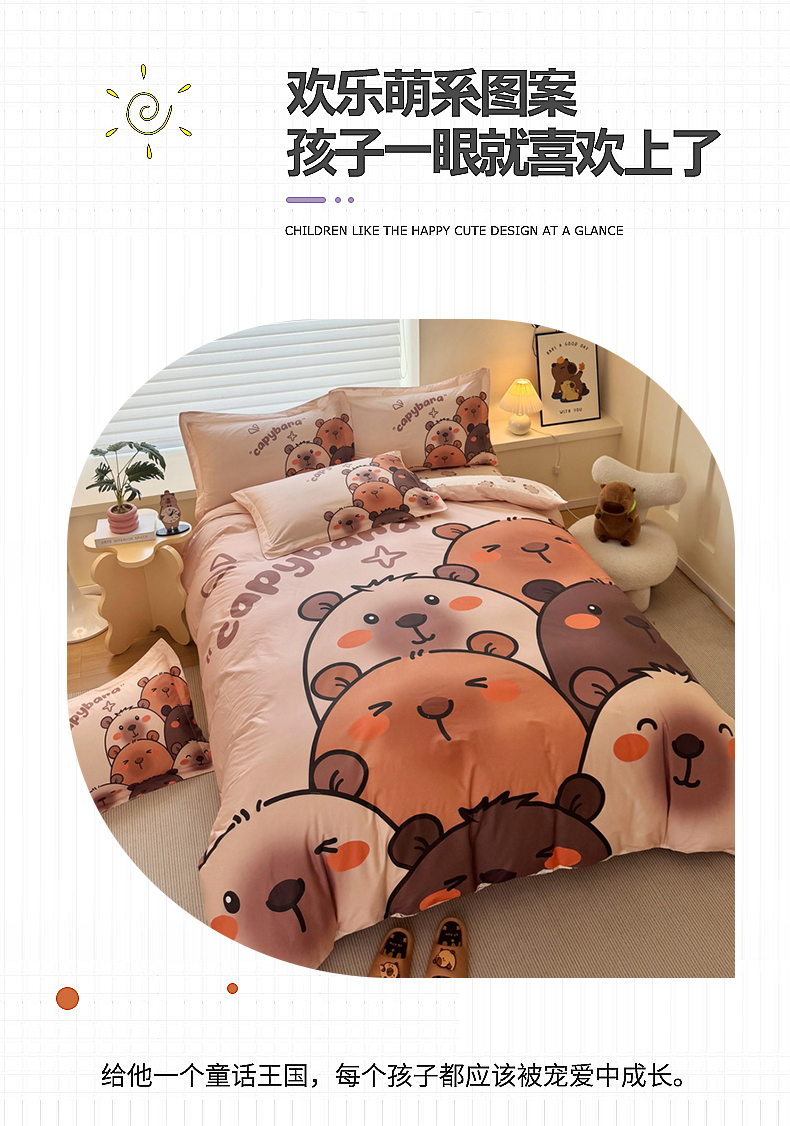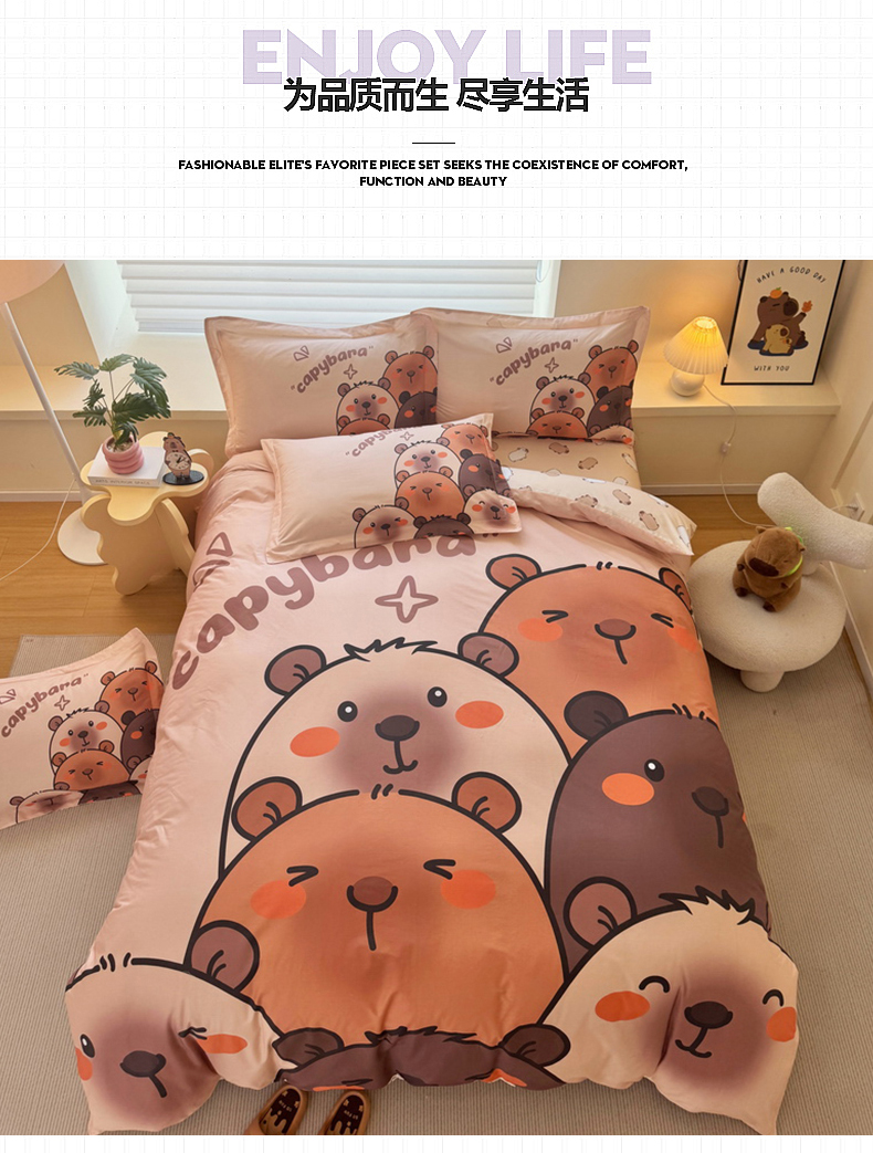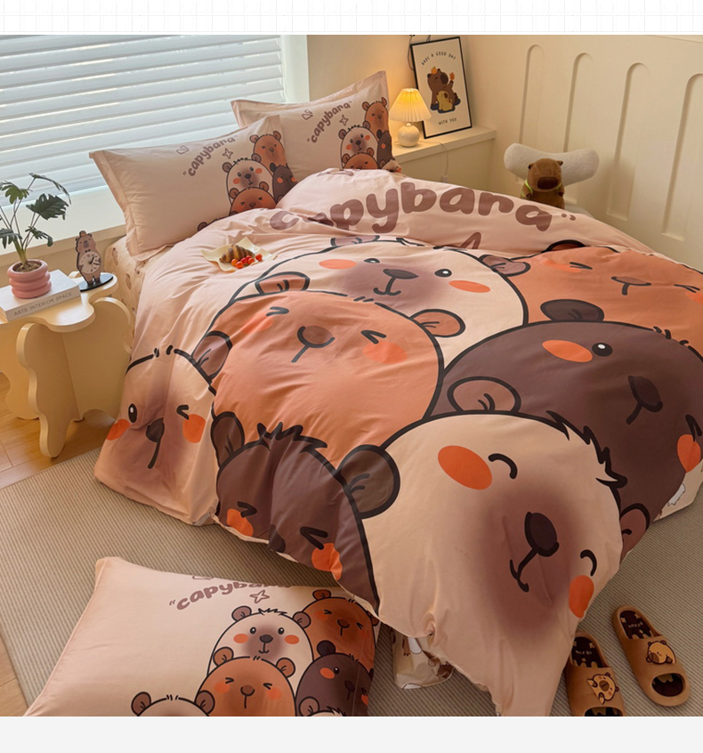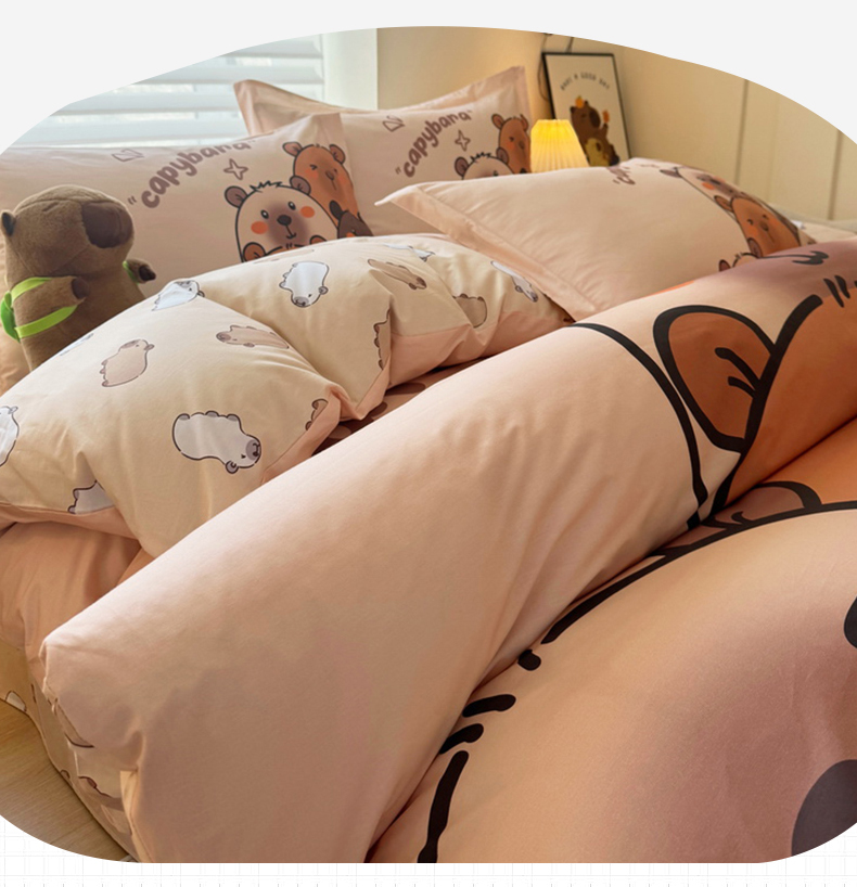 当前位置: 91家纺网 > 商品网购 > 床品套件 > 四件套 > 全棉普通四件套 > 蘭菲家纺 2025新款全棉大版卡皮巴拉系列四件套 豚一家