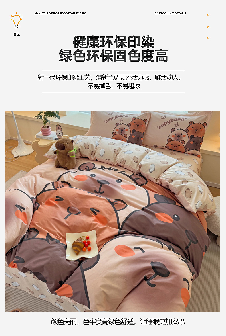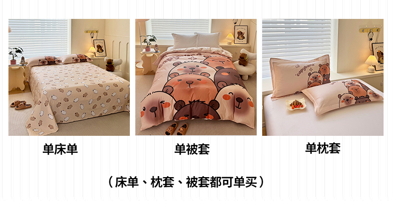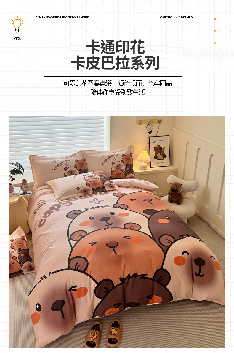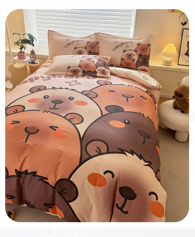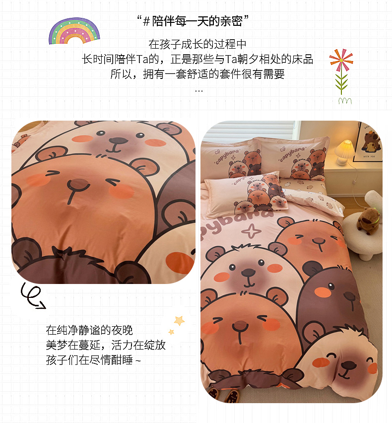 当前位置: 91家纺网 > 商品网购 > 床品套件 > 四件套 > 全棉普通四件套 > 蘭菲家纺 2025新款全棉大版卡皮巴拉系列四件套 豚一家
