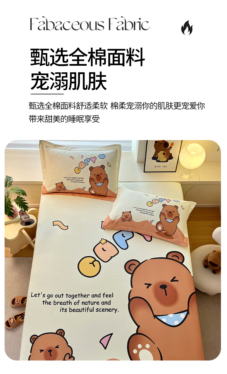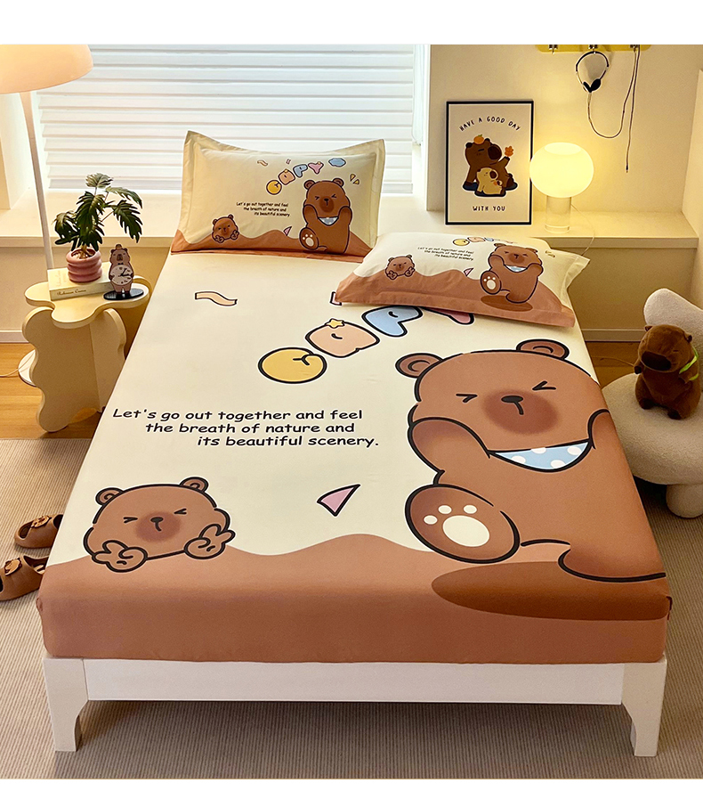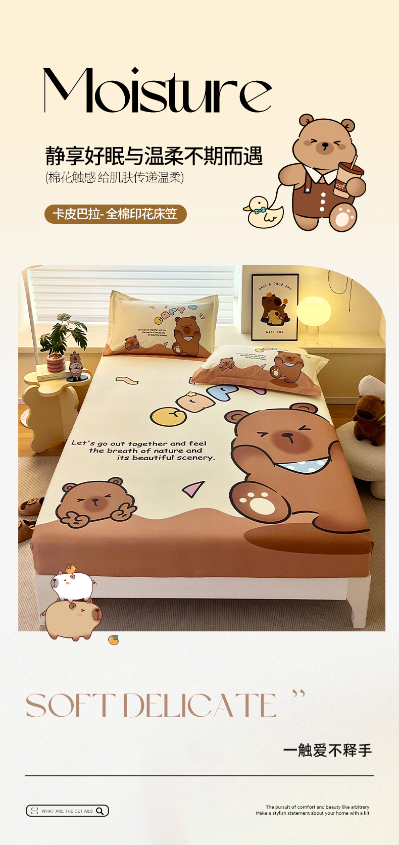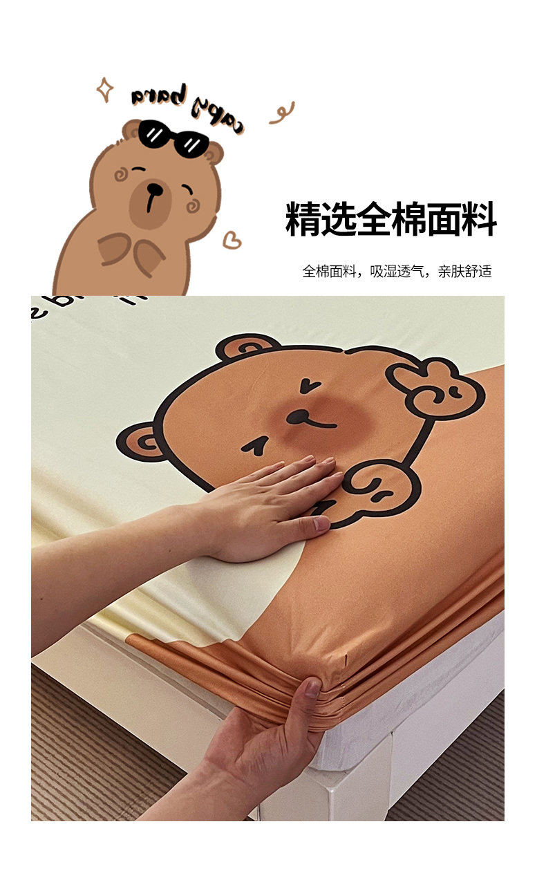 蘭菲家纺 2025新款全棉大版卡皮巴拉系列单品床笠 熊巴拉