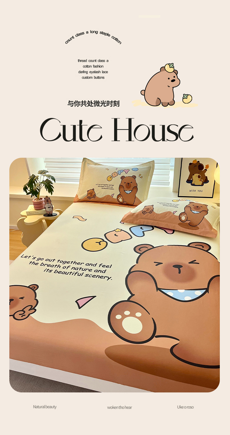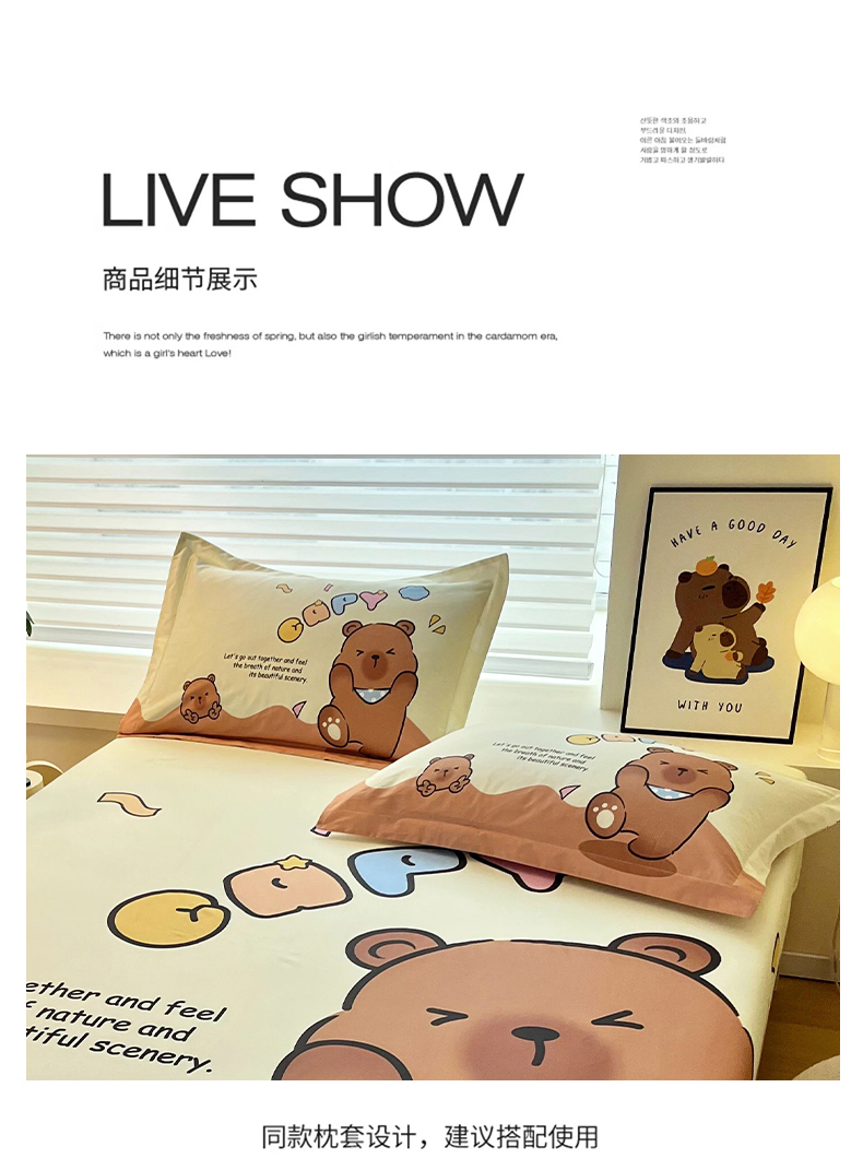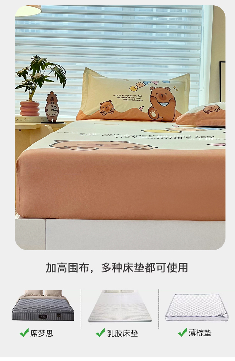 蘭菲家纺 2025新款全棉大版卡皮巴拉系列单品床笠 熊巴拉