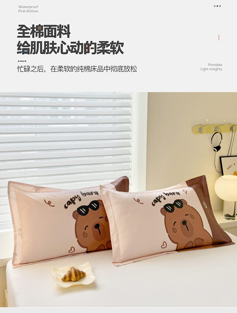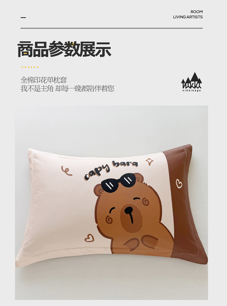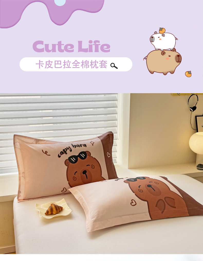 蘭菲家纺 2025新款全棉大版卡皮巴拉系列单品枕套 皮小蛋