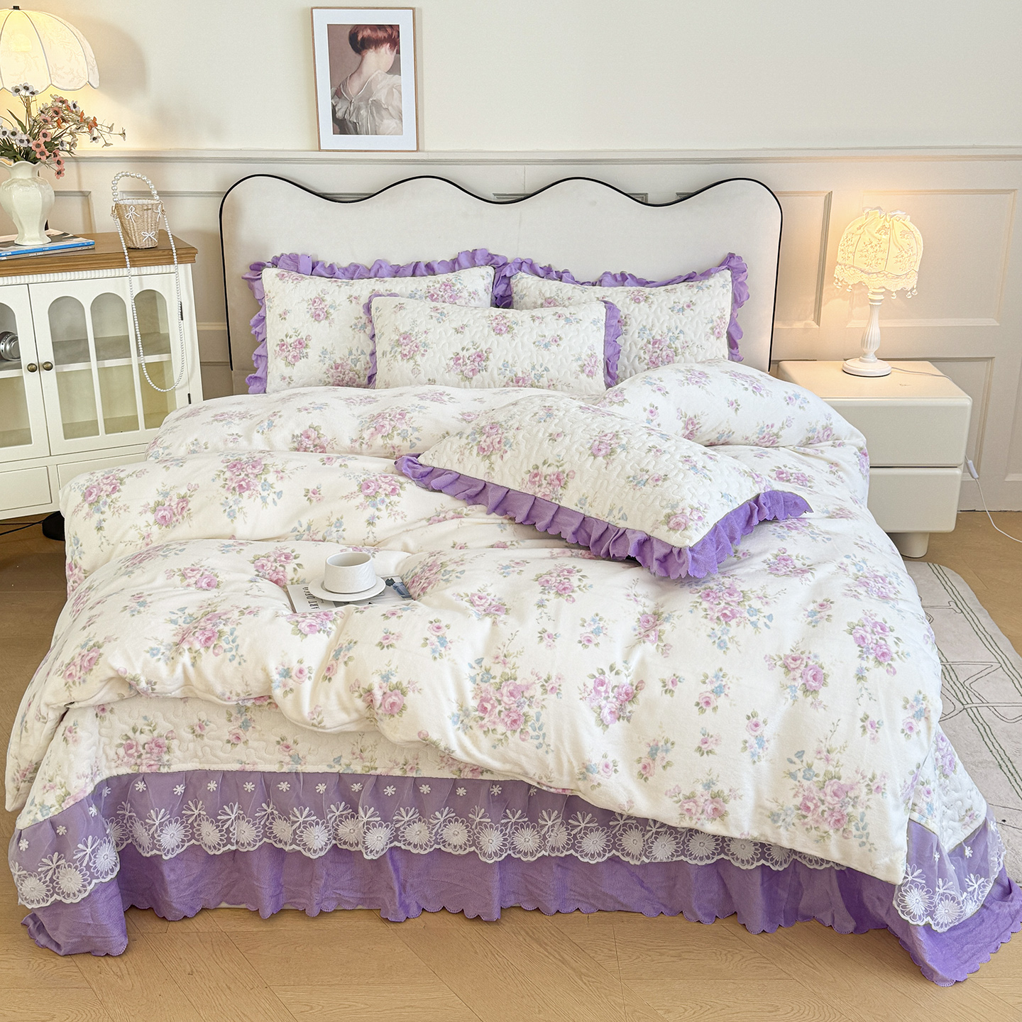 当前位置: 91家纺网 > 商品网购 > 床品套件 > 四件套 > 牛奶绒四件套 > 珍爱家纺 2025新款冬季加厚夹棉保暖牛奶绒蕾丝花边床盖床裙单件三件套双人四件套 花海